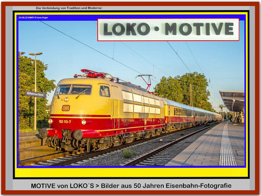 Hier im Tagebuch mit dem blauen Button sind immer die aktuellen Meldungen und die neusten Bilder zu sehen, zusätzlich Texte und Hintergründe zu meinen kurzen Auftritten im Lok-Report; Es empfiehlt sich, immer hier mit der Betrachtung der Homepage zu beginnen und vom Tagebuch aus weiterzugehen zu Verzweigungen oder den Inhalts- Übersichten