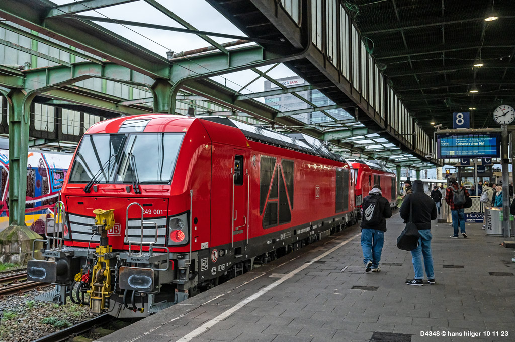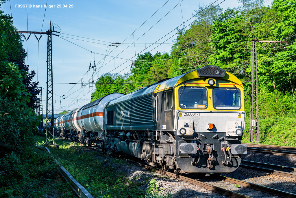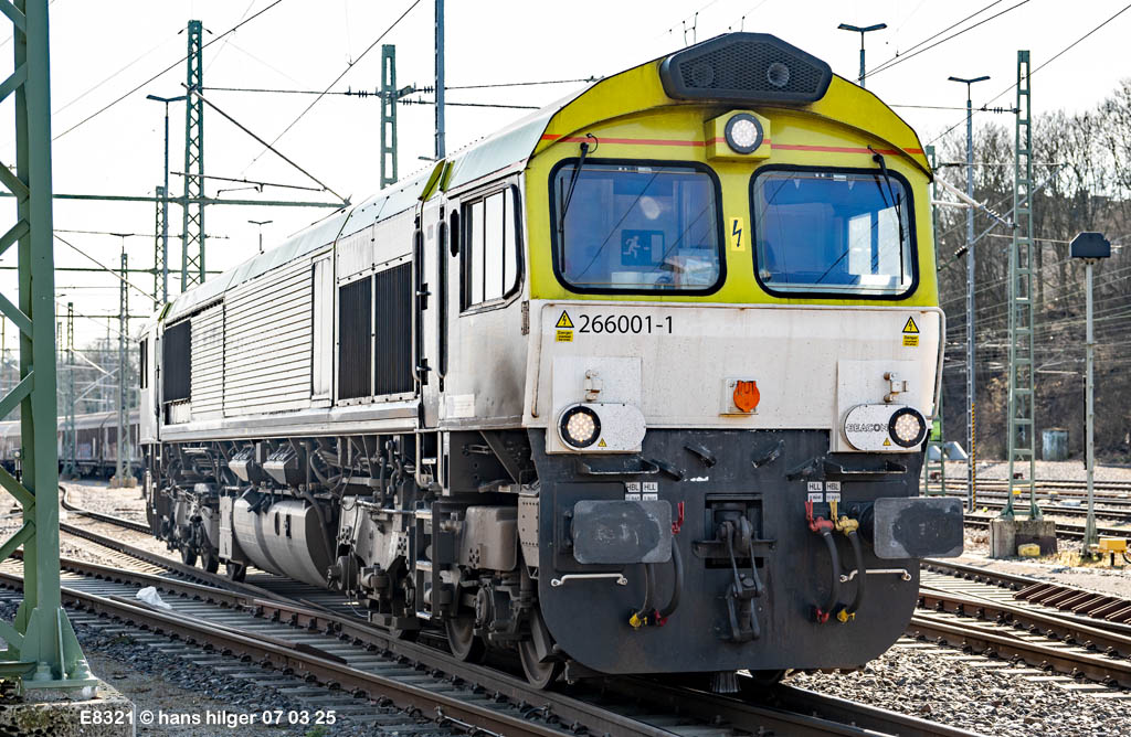 <26> Ja was ist das denn ?? Eine Lok mit derselben Nummer! Aber das hat alles seine Richtigkeit = Das war 1968 in der DDR eine Probelok für eine neue Kleinloktype und war als V23 001 bezeichnet. Bei der Umnummerung zu EDV- fähigen Nummern (die es auch in der DDR gab) bekam die Lok dann die Nummer 102 001, und mit dieser Nummer fuhr sie durch die Gegend bis zum Zusammenschluß der beiden deutschen Staatsbahnen – Ab diesem Moment hieß sie dann 312 001, was eigentlich auch heute noch ihr korrekter Name wäre, aber das DM- Museum hat sie historisch korrekt als “102 001” bezeichnet, jedenfalls war das der Kenntnisstand im Jahre 2011, als ich die Museumslok in Meinigen antraf<27> Jetzt werden wir wieder größer und kommen zu richtigen Loks, wo dieses Bild zufällig aufgefallen war. Mir gefällt es so gut, daß ich es hier eingestellt habe. Die große alte Dame hat leider in 2026 Fristablauf, ich möchte da viel Gutes wünschen ‼️ <28> Auch eine 001! Aber eine “Nachgemachte” . . . Es handelt sich um eine reine MaK- Industrielok, die nie eine Staatsbahnnummer besessen hat und auch keine brauchte. Seit sie auf größeren Strecken im Freiland fahren darf, muß sie natürlich doch ordnungsgemäß bezeichnet werden, und dazu hat das EBA die 0261 001 vergeben – Also DOCH ne echte 001, wenngleich erst zu später Zeit ihres Lebens<29> Sie kann derzeit (Anfang 2026) überall angetroffen werden und ist fleißig, allzeit gute Fahrt! <30> Jetzt wird schwierig: Wir haben hier gleich ZWEI 001er Nummern! Schaut mal . . .<31> Da ist die Nummer “260 001-3” gerade abgekratzt, und nun gilt die 261 001-2 bzw. die 1261 ! Während die eben gesehene MaK eine 0261 ist, also auch hier braucht man die vierstellige Nummer! WARUM das so ist, daß die Lok erst als 260 001 lief, ist mir nicht klar, ist aber auch gar nich sooo wichtig, HIER sind jedenfalls in der Galerie gleich zwei Plätze besetzt (!)<32> Das ist sicher ein seltenes Fahrzeug, und dazu noch eine echte 001. Das ist die 264 001 der Firma Stock aus Mainz, eine Voith Maxima, die mit hohen Erwartungen in den Markt ging seinerzeit, sich aber leider trotz guter Leistungen nicht durchgesetzt hat<33> Und noch ein schönes 001- Original = Die echte 266 001, der Erstling aller Class 66 in Europa! Die Lok gehörte 2025 zu Captrain Belgien, ist aber auch in D anzutreffen, HIER fand ich sie hocherfreut zufällig in Aachen West (wenn auch von der Schattenseite)<34> Nummer und Eigner besser erkennbar, zudem Zulassung in D, NL und B<35> Die genaue Nummer<36> Später aus anderer Perspektive, ebenfalls in Aachen<37> Und tatsächlich konnte ich diese Lok auch einmal vor der Haustür abgreifen = 266 001 bei ELOT<38> Noch eine 001, aber keine echte = Es ist die 266 461, die aber als “29 001” unterwegs ist<39> Auch sie hier war schonmal präsent in der Galerie, aber: Sie soll einen neuen Eigner bekommen = Alle Class 77 der Bahn gehen dem Vernehmen nach an Beacon und werden an die Bahn zurückvermietet, dazu zählt auch sie hier, die 077 001 oder 266 401, wie man sie auch nennen könnte. Noch ist sie täglich im Ruhrgebiet unterwegs und fleißig (Stand Anfang 2026), hier kommt sie mit Frischstahl von Krupp- Mannesmann HKM, der irgendwo im Ruhrgebiet weiterverarbeitet wird<40> Aber dies hier ist jetzt mal KEINE echte 001. Dies ist die 132/232 404, die 1995 in Seddin ausgemustert wurde und den Weg zur Wismut fand, später dann zu Starkenberger. Lange Jahre hieß sie danach V300 001, bis sie ins Ausland verkauft wurde, wo sich ihre Spur etwas verliert<41> Auch keine “echte” 001. Oder inzwischen schon . . . Das war die Riesenlok 142/242 003 der Reichsbahn, eine 4000 PS- Wumme ❗️von der es nur zehn Stück gab. Später war sie als W 232.01 unterwegs und wurde später nach Polen verkauft, wo sie die Nummer 232-001 bekam und damit zu einer “richtigen” 001 wurde<42> Inzwischen habe ich eigene Bilder von 246 001, der Vorgängerbauart der 245 <43> Diese beiden Nullnummern können gar nicht echter sein, es sind die Erlköniginnen der Reihe 249! Völlig unerwartet kamen 249 001 und 002 eines Tages durch Duisburg gebrummt auf einer ihrer allerersten Fahrten, die wahrscheinlich nach Minden zur Systemtechnik ging. Sie waren so neu, sie waren noch gar nicht abgenommen und liefen mit Sondergenehmigung<44> Leider lief die 001 hinten und war etwas verdeckt, aber sie ist es . . . die 249 001 im Neuzustand<45> Von ihr habe ich inzwischen eine Aufnahme im Ursprungszustand = Wir sehen die spätere 251 001 von Sylt im Zustand als “6.661” für die Norwegische Staatsbahn! Aus dieser Baureihe wurden die “Marschbahnwummen” für Deutschland umgebaut <46> Dies ist auch eine von ihnen, und zwar die 251 011, die bei ihrem späteren Besitzer HectorRail die Nummer “861.001” bekam und damit zur 001 wurde; Zusätzlich trägt sie den Namen “Thor”<47> Zwei Loks der Reihe 271 in Hamburg Bergedorf, und eine davon ist 1271 001 (die erste), die andere heißt 1271 021<48> Hier sind Lok und Baureihennummer überraschend, denn unter der Baureihe “272” hätten wir uns doch eine G 2000 vorgestellt, aber weit gefehlt: Dies ist die 0272 001, eine MaK von 1982 !<49> Aber dies hier ist jetzt eine richtige G 2000 = 1272 001, ebenfalls von MaK/Vossloh. Das heißt: Auch hier ist die vierstellige Baureihennummer zwingend erforderlich zur Unterscheidung zwischen 0272 und 1272<50> Wir haben das Bild 50 erreicht. Und damit wieder eine völlig überraschende Nummer: Hier hätte man doch eine etwa wie “275” klingende Nummer erwartet, es ist aber die 3512 001, ex “501” von Thyssen und noch früher die “281”. Dank an Matthias Lauter für das Bild im vorbildgerechten Alterungszustand, Lackfarbe “gebraucht” . . .<51> Noch eine Überraschung: Die RBH hat nämlich auch gelegentlich Loks verkauft. So wie diese hier, die an eine Investmentfirma ging und von dort aus weiter zur Chemion (Bayer) in Uerdingen<52> Und sie war mit der NVR- Nummer zur echten 001 geworden<53> Hier s