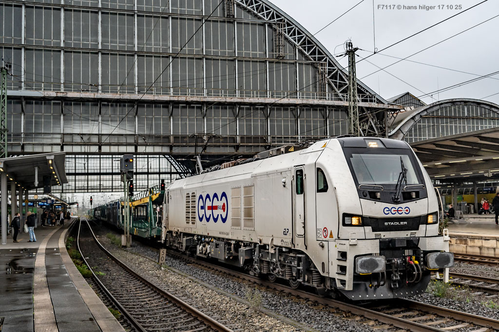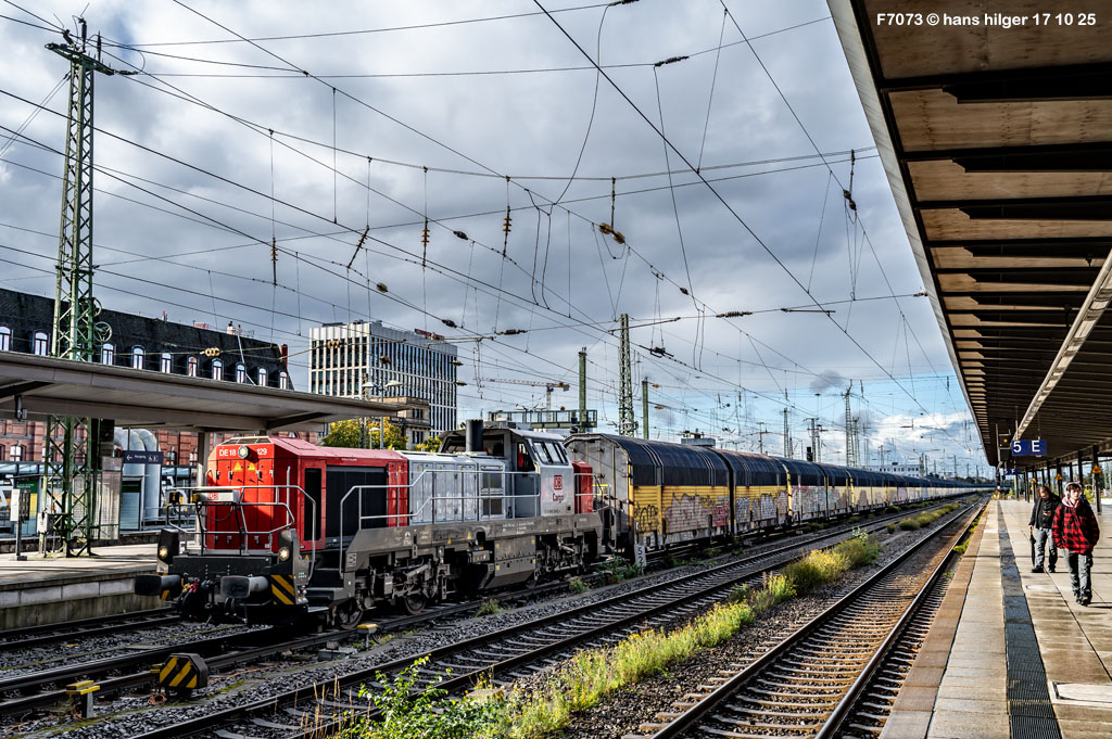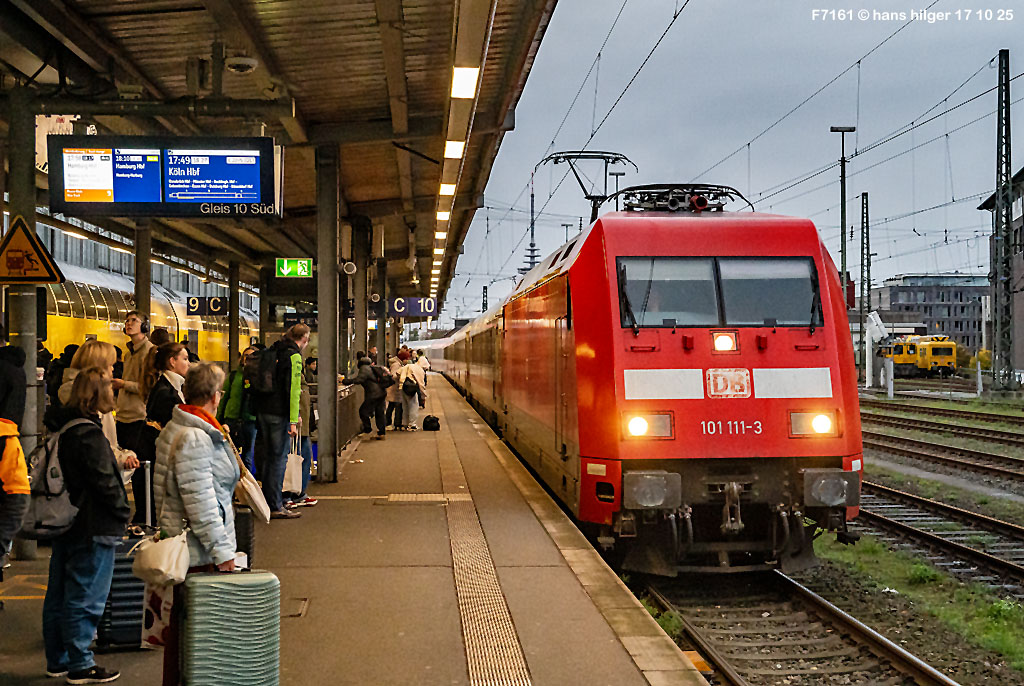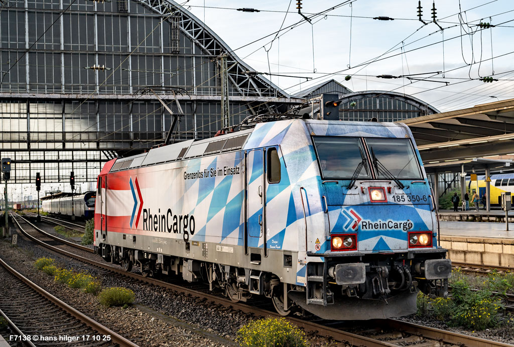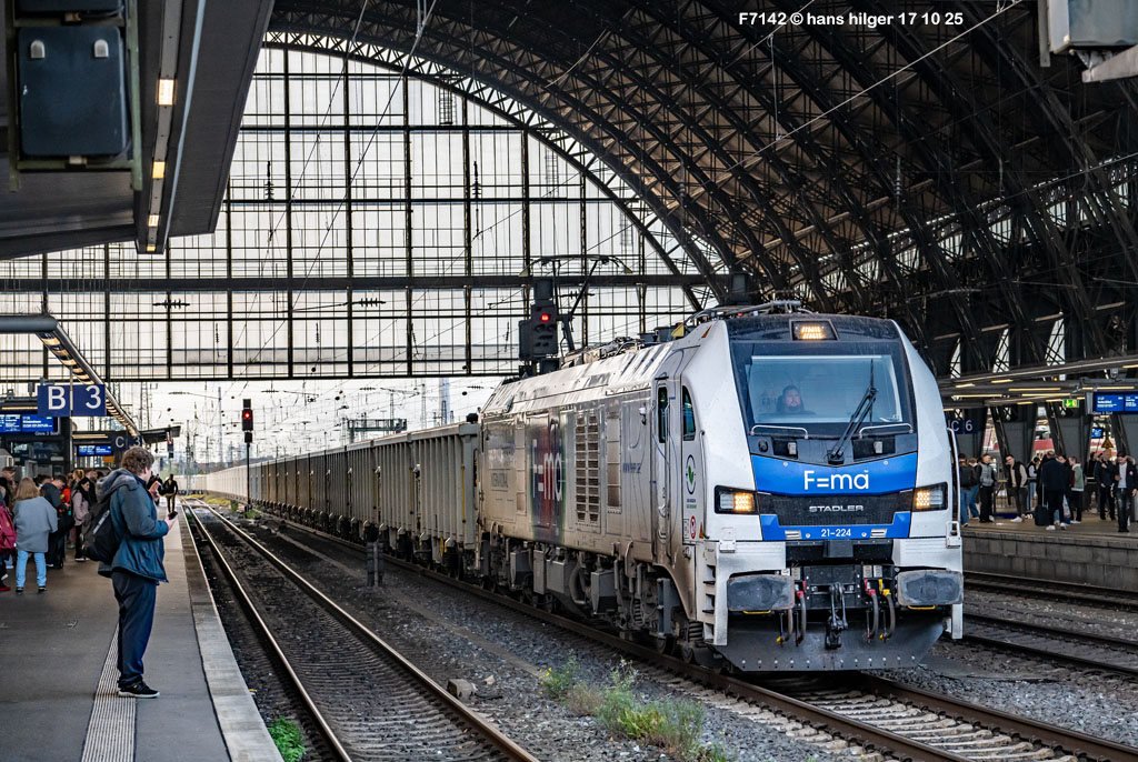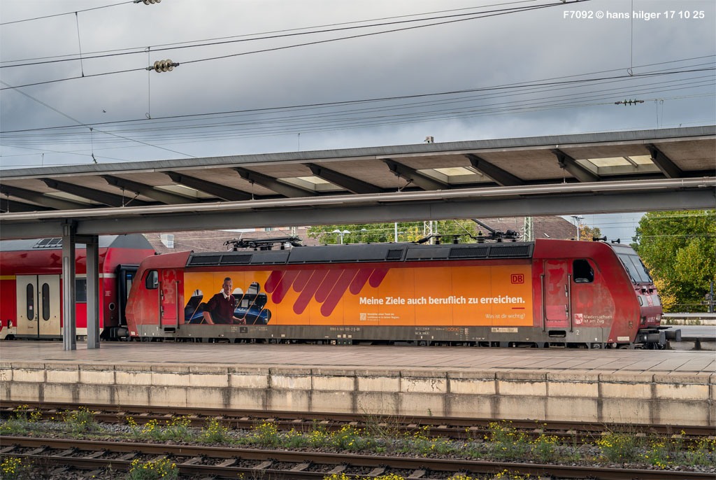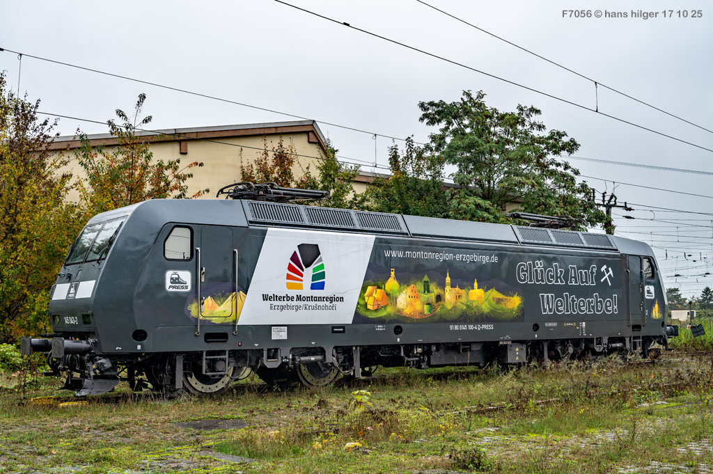 <> Nun kommen wir zurück nach Bremen, JA, auch dies hier ist Bremen! Im Hintergrund liegt die Innenstadt und der Hauptbahnhof, hier unter uns liegt die Einfahrt zum Rangierbahnhof Bremen- Walle und weiter das Bw Bremen Rbf im Ortsteil Gröpelingen. Dieser “Altmann-” Autozug mit der privaten 192 047 möchte also nach Bremen Rbf und hat in wenigen Metern sein Ziel erreicht<> Nun sind wir am Bremer Hbf, wo wir nett begrüßt werden. Nachfolgend ein paar der dort entstandenen Bilder, hier 388 017 der CD<> So toll die grünen Werbungen auf dem Bremer Bahnhof auch sind (die meisten sind sehr schön und teils auch humorvoll gemacht), so gibt es doch ein klein wenig konstruktive Kritik: Wenn ein gewollter Fahrgast seinen Zug “erfolgreich” verpaßt und (wie hier) nur noch die Schlußleuchten seines gedachten Zuges sieht, dann wird er diesen Text doch eher als Verhöhnung werten . . .<> Auch ein 001- Fahrzeug hat mich begrüßt, was ich sehr nett finde! 😎<> Und eine quasi flammneue Lok wurde geboten: 7193 203 von RP, Abnahme 25.07.25 MMAL mit einem unendlichen Zug<> Auch noch ziemlich neu ist diese DE18 von Vossloh, von denen die DB Cargo 20 Stück langfristig angemietet hat, davon ist dies hier die 4185 129, die eigentlich dem Fahrzeugverleiher Nexrail gehört. Das soll dann preiswerter sein als der Einsatz eigener vorhandener V90 oder 261/265, aha<> Eine weitere Lok dieses Typs DE18 war im Bw Bremen Rbf zur Pause abgestellt = 4185 031 alias Locon 324<> Klassische Fahrzeuge waren aber ebenso vertreten: Wahrscheinlich zu einem Werkstattaufenthalt weilen zur Zeit 111 067 und 111 111 in Bremen, gemeinsam angeliefert mit zwei Ersatzteilwagen und einem übel lackgeschädigten Dosto- Steuerwagen<> Dort gab es zudem unter anderem diese schöne Werbelok der RC = 185 350 mit den Landesfarben Österreichs und Bayerns<> Und sie hier: 146 105 mit Werbung in eigener DB- Sache für regionale Lokführer<> Noch ne schöne Werbelok gewünscht? Aber bitte: 145 100, die bei ihrem Besitzer Pressnitztalbahn aber “143 043” heißt, die also mit zwei Nummern unterwegs ist = Der offiziellen NVR und der internen Press- Nummer<> Genauso wie diese beiden Oldies desselben Eigners Pressnitztalbahn: Wir lesen 140 041 und 042, tatsächlich sind es aber die 140 810 und 834, die mit den wirklichen 041 und 042, die längst verschrottet sind, Nix zu tun haben. Auch diese gepflegten alten Schätzchen tragen zusätzlich eine interne Nummer der Press<> Zu den Überraschungen in Bremen gehören die Riesenloks der Reihe 159, von denen es zwar bereits eine ganze Menge gibt, aber sie sind immer noch interessant durch die bunte Vielfalt und durch ihre nur zufällige Sichtbarkeit an einer Strecke, Laufpläne und gesicherte Leistungen sind mir nicht bekannt. Hier zum Beispiel 159 224 als Lok “21-224” der HHPI (Heavy Haul Power International) mit dem Markenzeichen F=ma, was eine mathematische Formel ist = Ein Newtonsches Gesetz = Kraft ist Masse mal Beschleunigung<> Eine weitere 159 in der Grundfarbe Weiß kam hinzu: 159 214 von ecco- Rail<> Und mit dieser 159 254 von BBL waren es sogar drei Riesenloks der Reihe 159<> Und dies ist symbolhaft der Abschluß des Updates . . . erinnernd an die Pechsträhne während der beiden Familienreisen: Liegenbleiben mit defekter Kupplung im Baustellenbereich in Bremen, daraus resultierend eine Bahnfahrt ab Bremen, dann aber bitte mit dem 2215 aus Westerland – Natürlich nur echt mit satter Verspätung! Solche lokbespannten Züge sollen im nächsten Jahr nicht mehr eingesetzt werden bei der DBAG, ihre Tage sind gezählt.