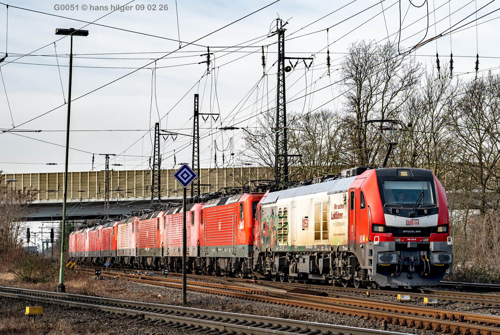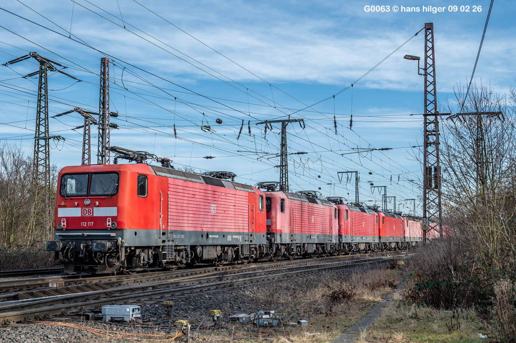 Am 9. Febrauar 26 erreichte ein weiterer Schrottzug Nr 82991 den Verwerter ihres Vertrauens in Leverkusen- Opladen. Auch diesmal waren keine fahrfährigen Loks dabei, sondern durchweg fristabgelaufene Ersatzteilspender vom Lokfriedhof Leipzig Engelsdorf. Jeweils 4 “Ladys” 143 und 4 “Renntrabis” 112 waren dabei, die nachfolgend vorgestellt werden mit den letzten möglichen Bildern. Die Dokumentationen aus Opladen werden nun sehr viel dünner ausfallen, denn die Firma Bender hat nun mit einem Sichtschutz aus Containern auch die letzte Lücke gegen Fotografen geschlossen, dazu weiter unten mehr . . .