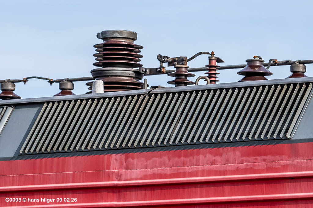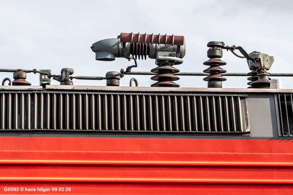 <27> Da wäre zunächst der ältere Hauptschalter der 112 123, der besonders aufgefallen ist<28> Und im Gegensatz dazu der jüngere Hauptschalter ganz anderer Bauart auf 143 138<29> Und auch dieses Motiv ergab sich noch von einem Fotografen, der aus großer Höhe aus besserer Luft knipsen wollte<30> Auf dem Weg nach vorne gab es dann diese betriebliche Besonderheit: Das gibt es nur selten, daß ein Fensterzug in Opladen über die Güterstrecke fährt. Hier ist es der 411 081 “Horb”, der irgendeiner Baustelle ausweicht