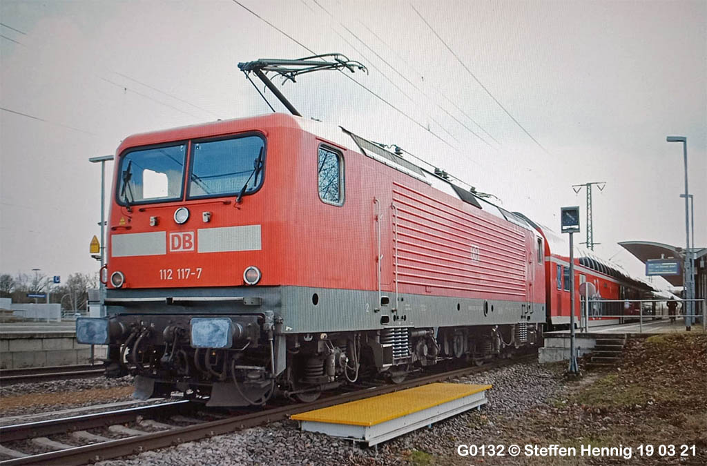 Zu dieser frühen Nachwendezeit wurden gleichzeitig Loks für die Bundesbahn und für die Reichsbahn gebaut, und die wurden (wenn möglich) abwechselnd ausgeliefert, sodaß die Fabriknummer AEG 21520 für die 112 122 der Deutschen Reichsbahn vergeben wurde, die Nummer AEG 21521 für die Lok 112 168 der Deutschen Bundesbahn und die Nummer 21522 wieder für eine Lok der Reichsbahn, nämlich 112 123. So kommt es, daß zwei Loks mit direkt aufeinanderfolgenden Nummern doch keine direkten Schwestern sind! 112 169 hat die Nummer 21523 und so weiter . . .
