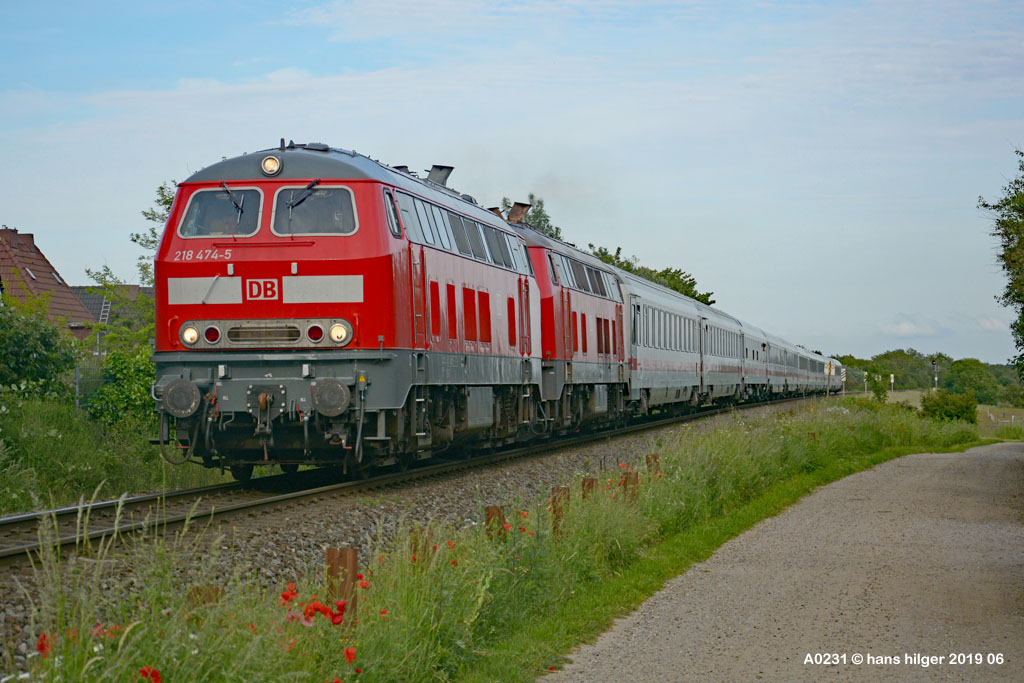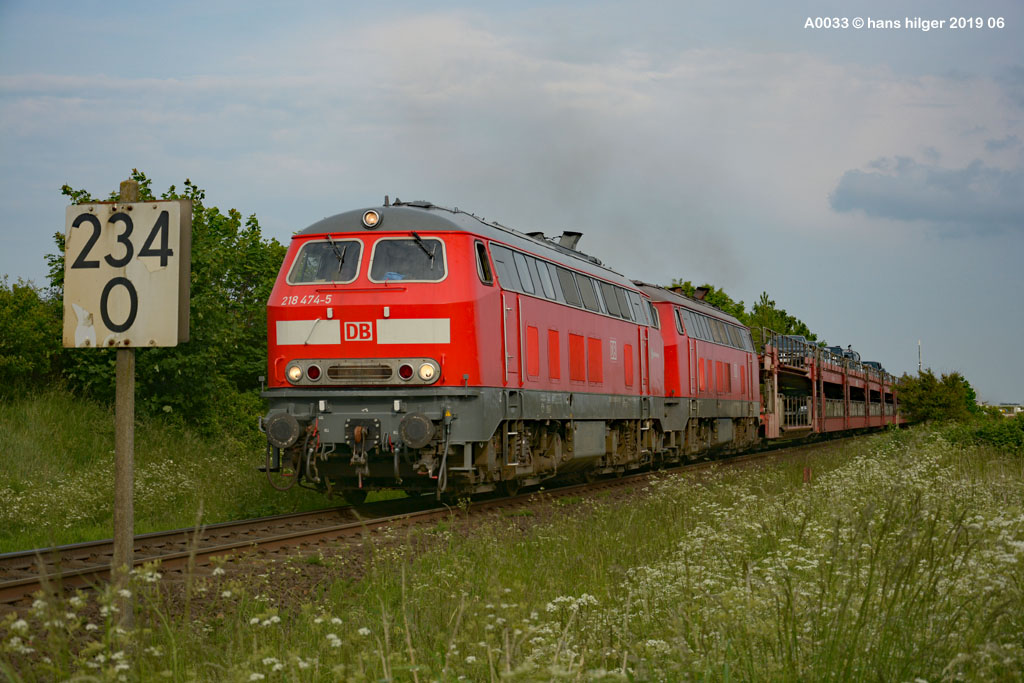 <46> Die 218 474 war eine zeitlang unterwegs für die Hamburger S- Bahn und hat Überführungen gefahren, aber eine kurze Zeit hat sie auch auf der Insel Sylt ausgeholfen, als mal wieder Mangel herrschte . . . Hier ist sie gerade in keitum wieder losgefahren nach einer Kreuzung im Sommer 2019<47> Auf dieser Aufnahme erkennt man das Logo der “S-Bahn-Hamburg”, das sicher ungewöhnlich war auf der Insel<48> Und ein zweites Mal hab ich sei erwischt zu dieser Zeit, sie erreicht gerade Tinnum und wird in wenigen Augenblicken ihr Ziel Westerland erreicht haben mit lauter Urlaubern für die Insel der Inseln<49> Das war zu der Zeit ihr Markenzeichen, das sie ja dankenswerterweise bis heute behalten durfte: Die Alu- Fensterrahmen<50> Und der Vollständigkeit halber hier auch noch ein älteres Bild der 216 224, die wir hier bei der Einfahrt von Osten her in Gerstungen sehen in der frühen Nachwendezeit