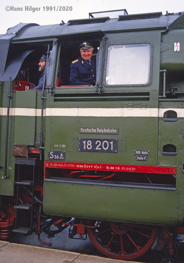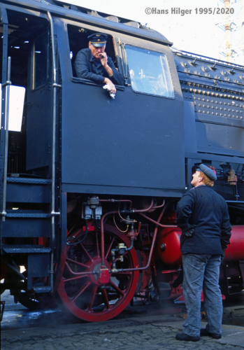 Diese tolle Aufnahme von Rudi Rindelhardt mit seinem Heizer vor der Riesenrädern der 18/61 ist mehr als beeindruckend: 2,30 Meter Raddurchmesser !!