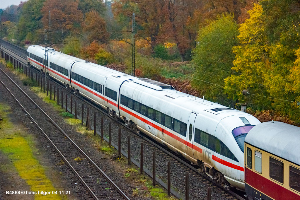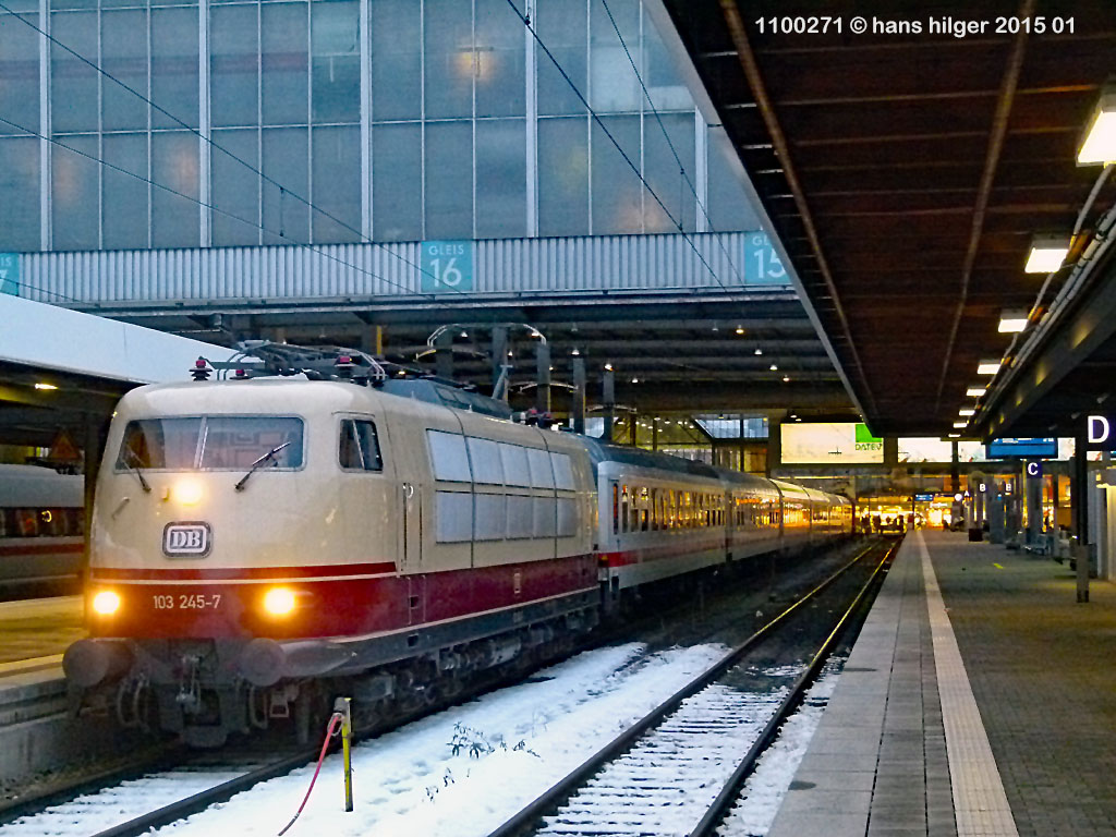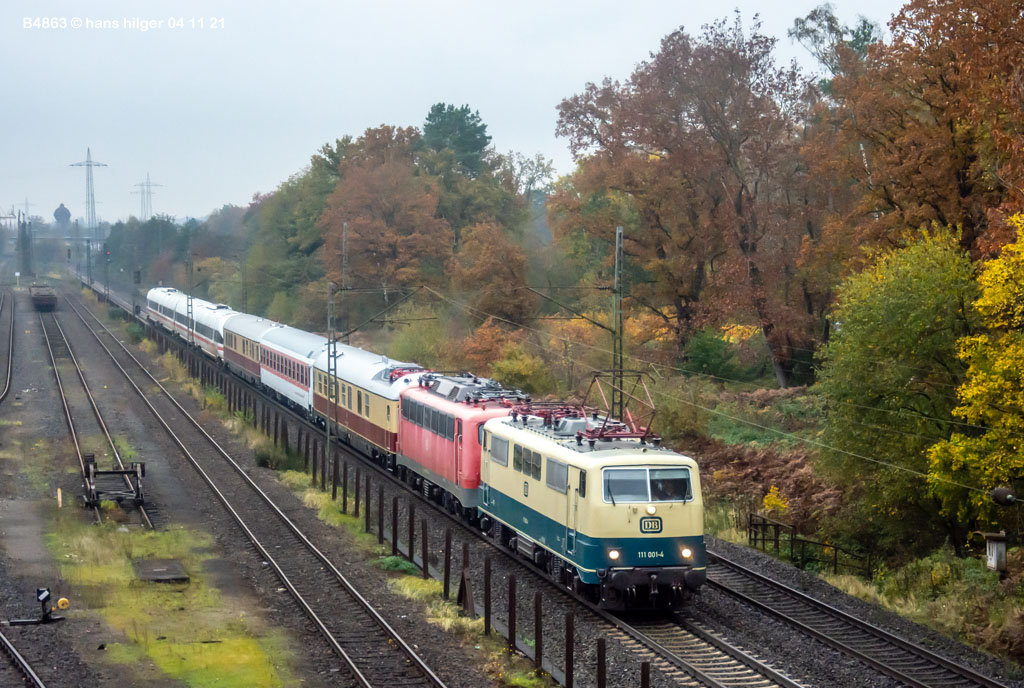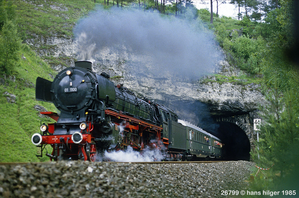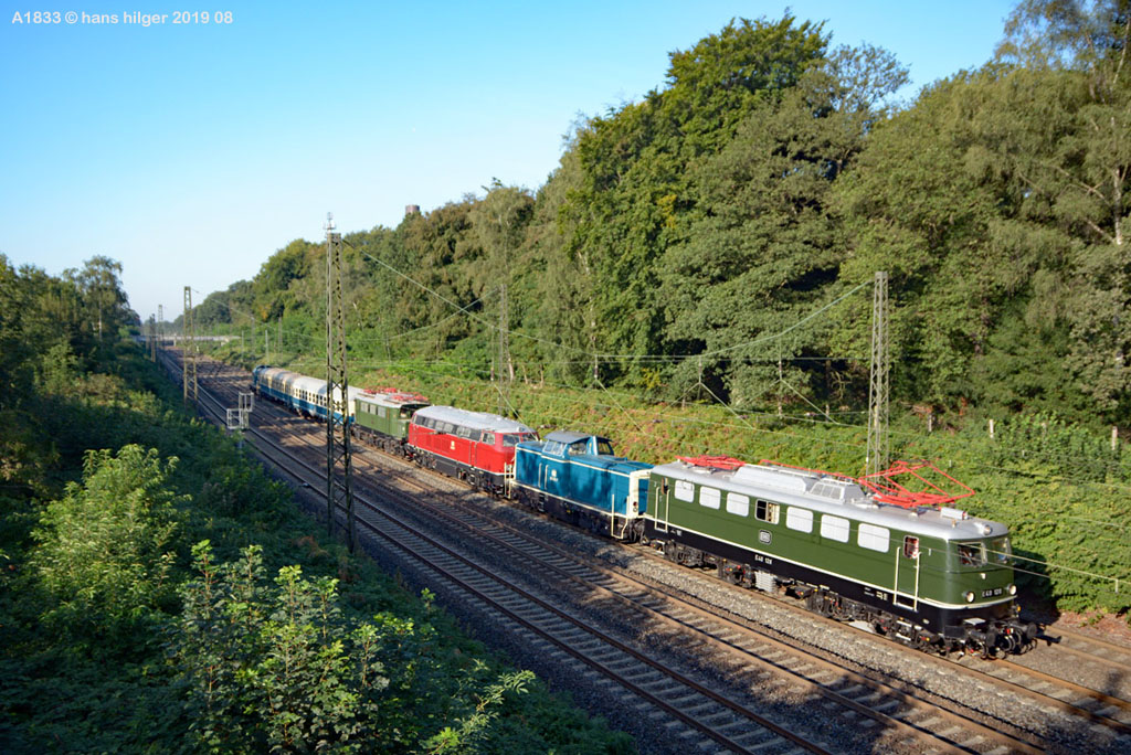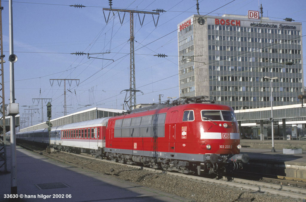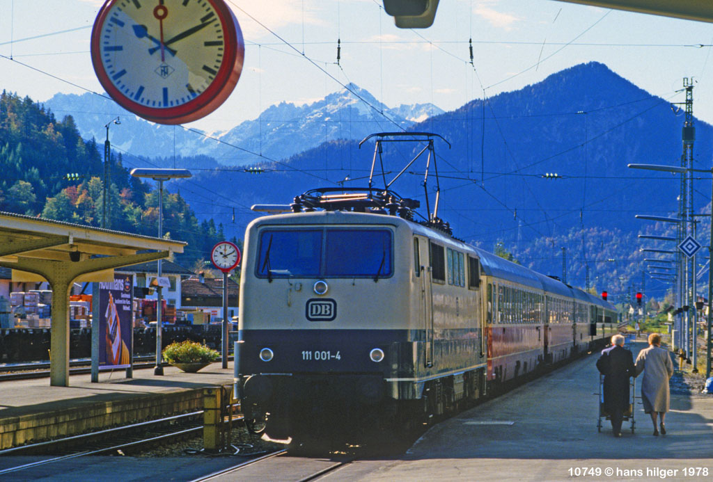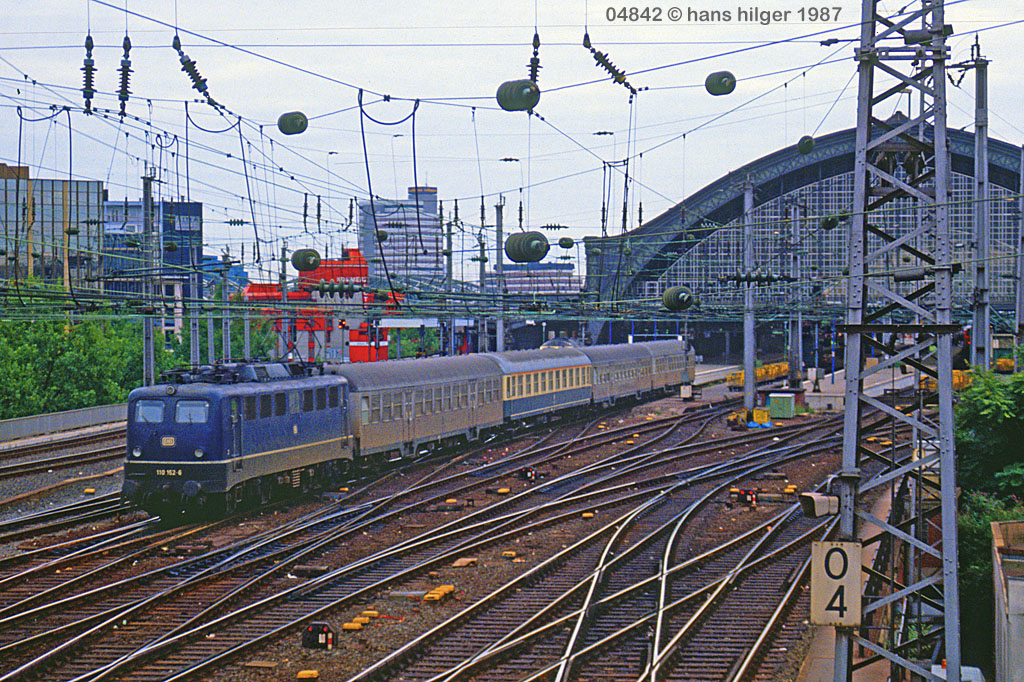<74> Dort steht vornean die allseits bekannte und betriebsfähige 111 001. Nicht allseits bekannt ist aber, daß ich diese Lok schon “kannte”, als sie noch ganz jung war und zum ersten Mal in ihrem Leben die beige/türkkise Lackierung besaß . . .<75> Da ist sie: 111 001 im Stuttgart des Jahres 1976, da war sie gerade ein Jahr alt<76> Und in Mittenwald hab ich sie mal getroffen in Farbe um 10 Uhr 10, allerdings im Schatten<77> Und am 4. November 2021 hab ich sie im typischen Novemberwetter erwischt, als sie gerade den 605 016 vom AW Krefeld Oppum nach Koblenz zum Museum gebracht hat; Gesehen in Duisburg Wedau. Leider ist der 605 016 ein Trauerspiel, aber okay, er ist wenigstens erhalten<78> Nächste in Koblenz ist die Schnellfahr- 110 300, die gemeinsam mit der 299 einen Sonderstatus hatte<79> Von ihr habe ich nur ein einziges Bild aus dem November 2001 bei Oberhausen, da war sie aber nur noch eine normale 110<80> Neben der schnellen 110 steht ein weiterer Edelrenner: 118 003 ex E18 03 im eleganten Blau ihrer Zeit<81> Im Sommer 1978 in München sah man ihr noch an, daß sie gerade kurz zuvor ihre neuen Lampen bekommen hatte, wo die Fans doch viel lieber die alten großen “Schlafaugen” gehabt hätten, aber wer fragt schon die Fans – Vergleiche mit Bild 162 weiter unten!<82> Dann ist im Museum die E69 03 = 169 003 an der Reihe, eine Hundertjährige: Sie ist von 1912 !!<83> Und von ihr habe ich tatsächlich ein sehr altes Bild aus dem Jahre 1974, entstanden aus dem Führerstand der 169 002, auf der ich mitfahren durfte. Danach ist mir die Lok nie wieder begegnet, weil ich (leider) nicht wieder in der Gegend war<84> Das nächste vorzustellende Exponat des Museums ist E03 001 = 103 001 und ex 750 001 aus dem Jahre 1965. Sie hat leider in 2026 Fristablauf und ist hoffentlich gut genug für eine weitere Fristperiode<85> Im Jahr 1988 stand sie als Meßlok am BZA Minden im Bw Hamburg-Eidelstedt<86> Und Anno 1994 war dieselbe Lok als Bahndienstfahrzeug 750 001 in Minden im BZA anzutreffen in üblem äußeren Zustand<87> Dann stand sie Ende 1997 im AW Opladen mit ihrem 30-Jahres-Aufkleber, aber Keiner wußte, wie es weitergeht, eine neue Untersuchung war kleineswegs selbstverständlich . . .<88> Aber es klappte irgendwie, sie wurde nochmal “gemacht”, wie man damals sagte. Und sie wurde schnell zum Liebling im AW Opladen, wo letztlich mehr gemacht wurde im HInblicxk auf ein langes Leben, als es im Augenblick notwendig gewesen wäre = Sogar die beiden Fronten wurden aufwändig neu beblecht. Links im Hintergrund übrigens die E94 279/579, die zeitgleich aufgearbeitet wurde im AW Opladen<89> Und seitdem gab es zahlreiche Sonderfahrten in alle Ecken der Republik, hier z.B. mit einem ganz exclusiven Sonderzug im Jahre 1999 am Heissener Berg in Mülheim/Ruhr, an dem noch alle sechs Gleise in Betrieb waren<90> Auch 103 113 war anwesend im Museum, sie istebenfalls betriebsfähig<91> Aber von ihr zeige ich nun keine Sonderfahrt-Bilder, sondern zwei eher ungewöhnliche Motive: Einmal sehen wir hier gleich DREI MAL die 101 113 = Einmal im Original, einmal als Sieck-Reisebüro-Modell im Maßstab 1:20 und einmal als H0-Modell von Märklin (gesehen in Köln Bbf)<92> Und das Märklin-.Modell kam nochmals zu Ehren: Hier konnte es mit leider nur wenig Tiefenschärfe in Duisburg mit dem Original 103 113 am Bahnsteig geknipst werden . . . was mit neueren digitalen Medien sehr viel besser “gefunzt” hätte (neudeutsch für funktioniert), aber die gab es damals noch nicht<93> Weiter gehts mit dem Bimmdzf 287.2 51 80 80-95 259-2 D-DB, der noch “geächtete” Drehfalttüren besitzt<94> Nun habe ich vom 80-95 259 kein Bild gefunden, wohl aber vom direkten Schwesterwagen 95 260, der hier im Juni 2023 an der Spitze vom 2157 in Duisburg einläuft in seiner letzten Betriebsphase; Es schiebt 101 042<95> Und davor steht der noch ganz im Original erhaltene n-Wagen, genannt “Silberling” mit der Nummer 50 80 31-53 199-1 ABn 703 D-DB, der sogar noch Fristen hat und eingesetzt werden kann. Seine Besonderheit waren damals die geschliffenen Pfauenaugenmuster im Außenblech<96> Ein Portrait eines solchen Wagens ist mir mal in Essen gelungen Anno 1991, allerdings nicht mehr ganz im Ursprungszustand, denn dieser Wagen hier besitzt schon den neuzeitlicheren blauen (türkisen) Rahmen, der im Original schwarz war; Die Nummer ist leider nicht lesbar <97> Dafür konnte ich mal das typische, geschliffene bzw. “gebürstete Pfauenaugenmuster” dokumentieren (in Augsburg)<98> Ein Gleis weiter stehen drei überhaupt nicht knipsfähige Loks, deren Aufnahmen hier nur als Sichtungsbilder dienen sollen<99> Aber es gibt ja Bilder der Lok von der Ausstellung in Bochum-Dahlhausen 1985<100> Dahinter diese nun wirklich nicht knipsfähige E60 10, sorry<101> Wie schön, daß wir hier wieder auf den Bestand des Archives zurückgreifen können = Bochum-Dahlhausen 1985<102> Sie ist die dritte, die nur ein Sichtungsbild zuließ, aber dat macht nix, denn . . .<103> Denn das hier ist sie 1985 bei den Paraden in Nürnberg, die 194 579 ex 279. Sie ist die Schiebelok (Nachschuß) von . . .<104> . . . diesem Zug, der von E93 07 gezogen wurde, so kommt diese hier auch noch mal zur Geltung und der Kreis schließt sich