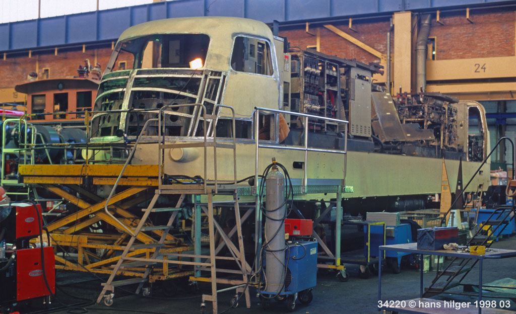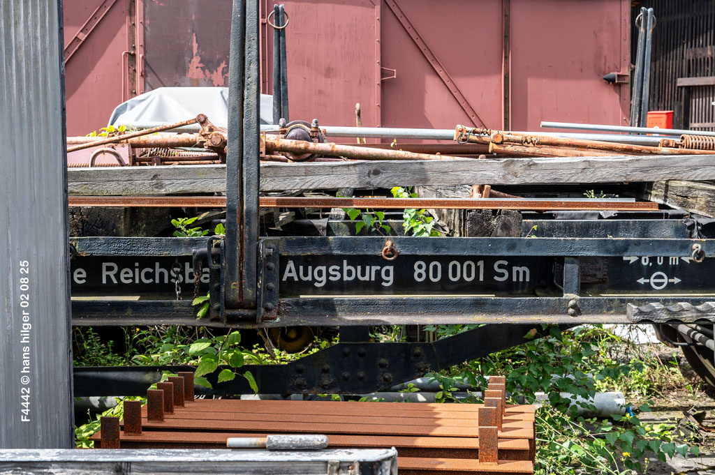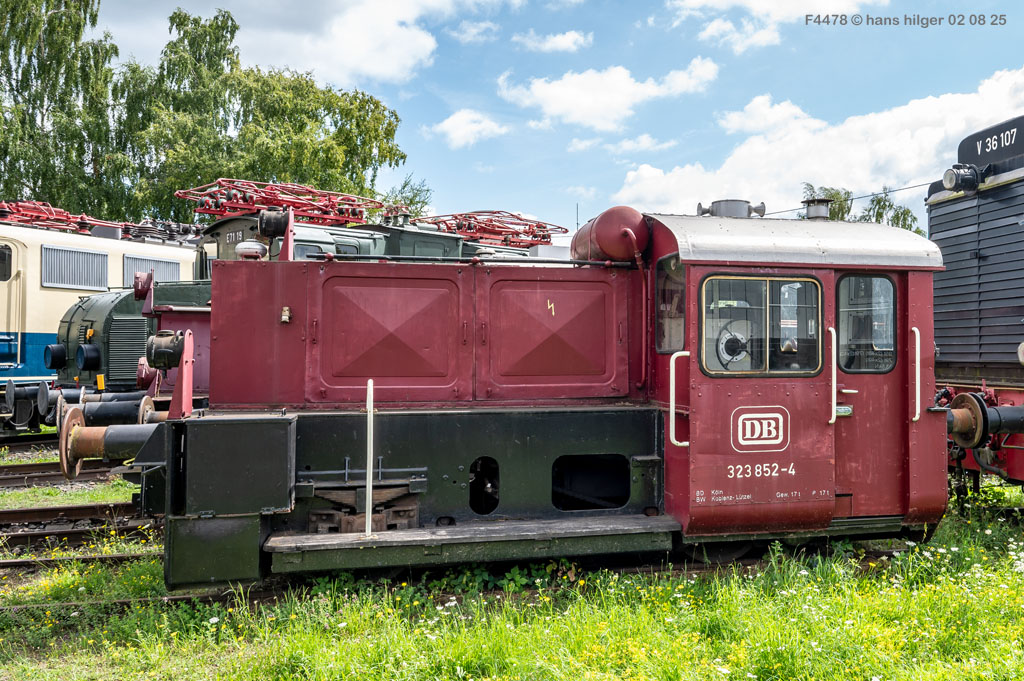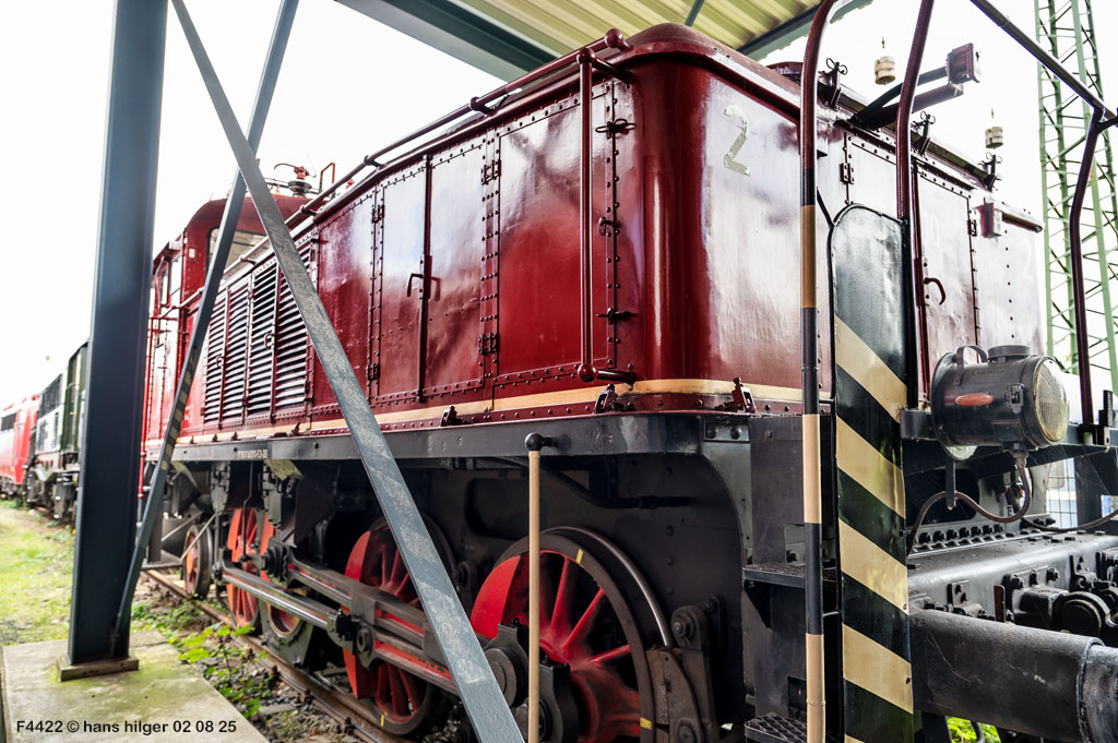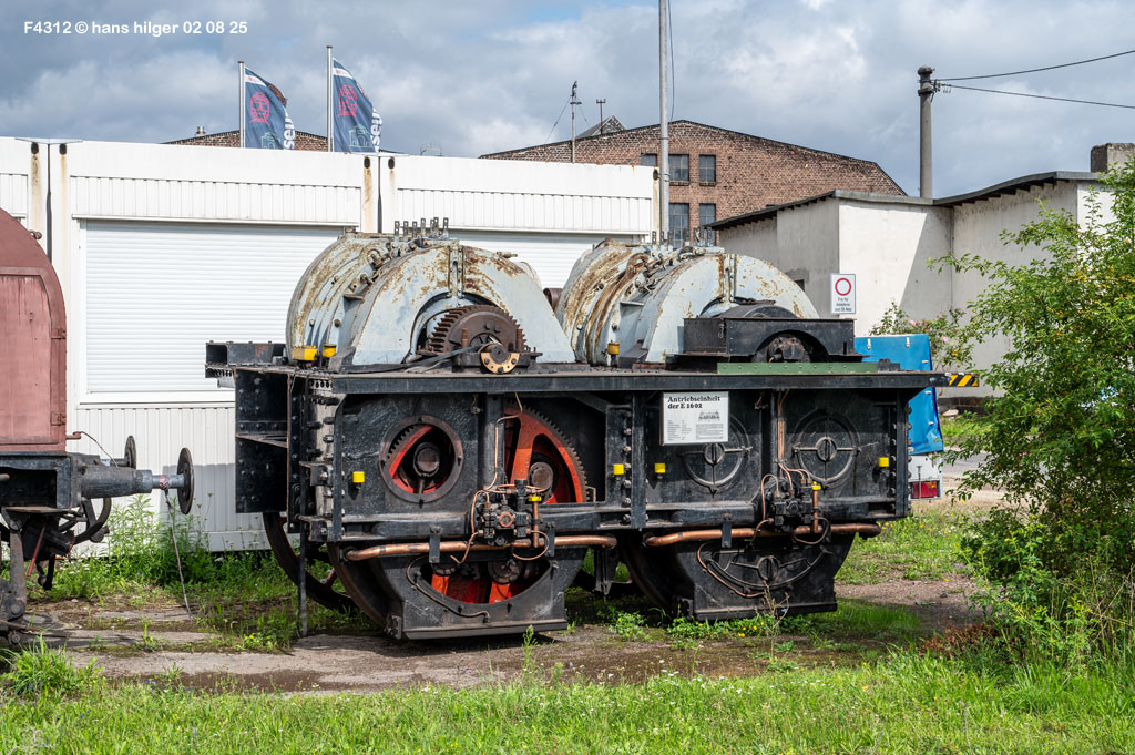 <1> Die Zufahrt an der Schönbornsluster Straße, verkehrsgünstig für Auto und Bahn gelegen in Nähe der B9 und am Bahnhof Koblenz-Lützel, mit einem ausreichend großen Parkplatz für normale Besichtigungen; An Tagen der offenen Tür ist aber die Anreise mit Öffis zu empfehlen<2> Diese zusätzlichen Hinweise sind dem ehemaligen Werbeaufsteller zu entnehmen, der am Eingang steht. Mit einem Bild, das (leider) irreführend ist . . . Da ist doch tatsächlich ein ICE abgebildet, der zum Museum gehören soll . . . Das ist ja prinzipiell auch RICHTIG, ABER der 605 016, von dem wir hier schreiben, ist ein rotes Tuch für die DBAG, ein Zankapfel . . . Ein NoGo. Die Bahn WILL keinen 605 mehr und verneint, jemals einen besessen zu haben = Einen hochmodernen Dieseltriebwagen, der 200 fahren konnte und mit automatischer Neigung schnelle Kurvendurchfahrten ermöglicht hätte, 20 Stück von ihnen hat es gegeben, fast alle sind verschrottet. Und da fängts an zu kriseln: Die Bahn hat DEN 605 fürs Museum genommen, der am schlechtesten erhalten war und hat deutlich BESSERE Züge verschrotten lassen. Sagt das nicht alles? Der 605 016 (siehe weiter unten) ist im heutigen Zustand nur mit horrendem Aufwand zu retten . . . ach lassen wir das . . . diese Zeilen sollen den positiven Eindruck vom Museum nicht trüben, die Mitarbeiter tun ihr Möglichstes und wenn alles aus allen Nähten platzt, sind Kompromisse unumgänglich<3> Am Eingang wird man erwartet von einem großen Metall-Werbeaufsteller der Bundesbahn, den es früher in großer Zahl auf Bahnhöfen gab, und von zwei Treibrädern von Dampflokomotiven. Sehr beachtlich: Die Koblenzer Macher haben sich Mühe gegeben und die Herkunft der beiden Räder recherchiert: Das größere Rad gehört(e) demnach zu der zerlegten 01 227 (zuletzt Ottbergen Heizlok, davor Ehrang als Betriebslok und als Wendelok oft in Koblenz zu Gast), das kleinere Rad soll von der 50 2885 (052 885) stammen (zuletzt Bw Schweinfurt, zerlegt in Grafenwöhr)<4> Daß auch an die Reichsbahn der DDR gedacht wird, die natürlich mit der Bundesbahn einen gemeinsamen Ursprung hat, wird unter Anderem mit diesem Fahrzeug mitgeteilt. Wer mit einem solchen Fahrzeug vorgefahren kommt, wird wahrscheinlich einen Ehren-Parkplatz IM Museum bekommen. Es ist quasi der VW-Bus des Ostens, der Barkas, ein in dutzenden von Varianten gebautes alltagstaugliches Modell der DDR-Industrie für Handwerker, Firmen, Post, Armee und für alle, die was zu transportieren hatten. Dieser hier ist ein Fahrzeug der Reichsbahn vom Kraftwagen-Bw “Kbw” Berlin mit dem Flügelrad auf der Tür<5> Ebenfalls am Eingang und schon in Bild 1 sichtbar, erwartet uns ein Antriebsgestell einer modernen Ellok aus dem Baujahr 1914! Und mit großer Wahrscheinlichkeit ist auch die Nummer der Lok bekannt als E71 13, die schon 1958 in Haltingen ausgemustert worden war, deren einer Fahrmotor mit dem Antriebsgestell aber erhalten blieb<6> Deutlich zu sehen der riesige Fahrmotor mit Antrieb auf den Zahnkranz als “Blindwelle” und Weiterverteilung an die Räder mittels Treibstange. Da im Museum auch eine komplette E71 zu bestaunen ist, kann man sich den Aufbau der Lok anhand dieses Gestelles gut vorstellen: Zwei solcher Gestelle aneinandergehängt, Führerhaus mit Trafo und Nebenaggregaten drauf, fertig ist die sehr erfolgreiche E71 = Eine für ihre Zeit durchaus hochmoderne Lokomotive<7> Damit ihr nicht sofort herunterblättern müßt zur E 71 aus Koblenz, hier ein Bild einer weiteren erhaltenen E71 aus der großen Fahrzeugausstellung im Herbst 1985 in Bochum-Dahlhausen. Dies ist die E71 28, die später ins Johanneum nach Dresden kam und dort heute noch verweilt<8> Diese Zahlen an der im Bild 6 ersten sichtbaren Achse geben indes Rätsel auf: Krupp 1914 ist klar, Direktion Halle ebenfalls. Aber “Halle E 1134” ist nicht zuzuordnen, ebenso die oberen Zeilen “Krupp 1914 1595 17”. Möglicherweise stammt diese Achse noch von einer anderen Lokomotive, aber das Baujahr 1914 paßt zu den ersten E71. Dieses Foto wurde so stark verdreht, daß die Hinweise lesbar werden, daher der blaue Rand<9> Auch dieses Antriebsgestell mit zwei Fahrmotoren der “E16 02” ist dort zu bewundern, und dazu gibt es altes Material:<10> Dies ist genau die erwähnte E16 02 als Bundesbahn-Lok 116 002 im Jahre 1977 mit einem Personenzug nach Freilassing in München Hbf. Wir sehen die Antriebsseite, was wichtig ist, denn die andere Seite sieht völlig anders aus. Wir erkennen, daß die Lok ZWEI dieser Antriebseinheiten besaß, von denen eine in Koblenz erhalten ist, der Rest war in Feldkirchen verschrottet worden 1978<11> Nun gehen wir hinein ins Museum und betreten als erstes die große Halle, in der zu Bundesbahnzeiten eine Wagenwerkstatt zuhause war. Ein Führerstand der 194 159 begrüßt uns, zu der ich leider keine alten Bilder habe<12> Aber ich habe dieses Portrait der Schwesterlok 194 158 zur Verfügung (Neuss Hafenbahn 2006). Nun sehen wir, daß das Führerhaus der E94 zur Hälfte “versteckt” ist hinter dem Vorbau und erkennen gleichzeitig, daß der Führerstand eine geschlossene Front und nur Kabelverbindungen in den Vorbau besitzt, die unten durch den Rahmen geführt sind. Dies hätte beim Anblick einer E94 doch Niemand erwartet, man hätte doch vermutet, die Wand, an der “E94 159” steht, sei unten offen hinter dem Vorbau<13> Und in der Halle erwartet uns als erstes wieder eine E16, die wir als Baureihe schon kennengelernt haben, hier ist es die E16 03 = 116 003, die uns auch ihre Antriebsseite zeigt, aber diese ist nur schlecht fotografierbar, weil zuviel davorsteht. Tatsächlich kann man sich hier im Detail ansehen, wo und wie das Antriebsgestell von draußen in der Lok eingebaut und genutzt war und man kann mit dem draußen Gesehenen vergleichen . . . was manchen Besuchern aber schwerfällt, die Antriebseinheit von draußen hier am Original zu suchen und zu verstehen = Das sind dann gute Gründe für eine geführte Besichtigung mit Erklärungen