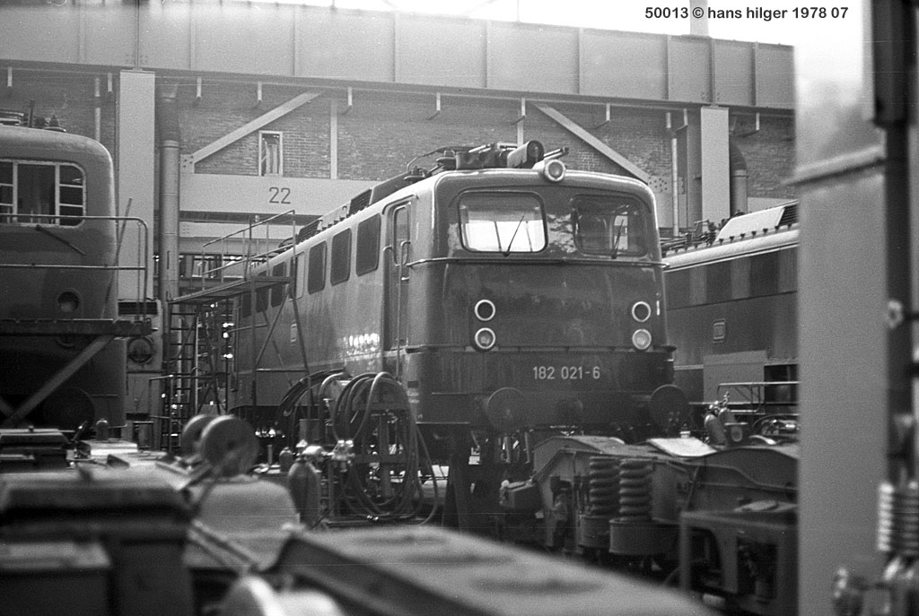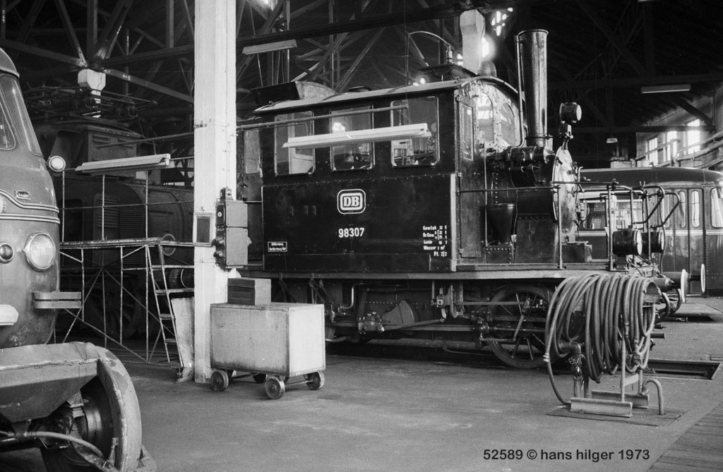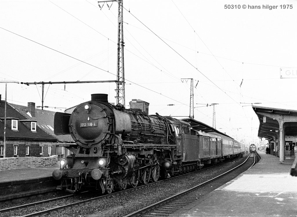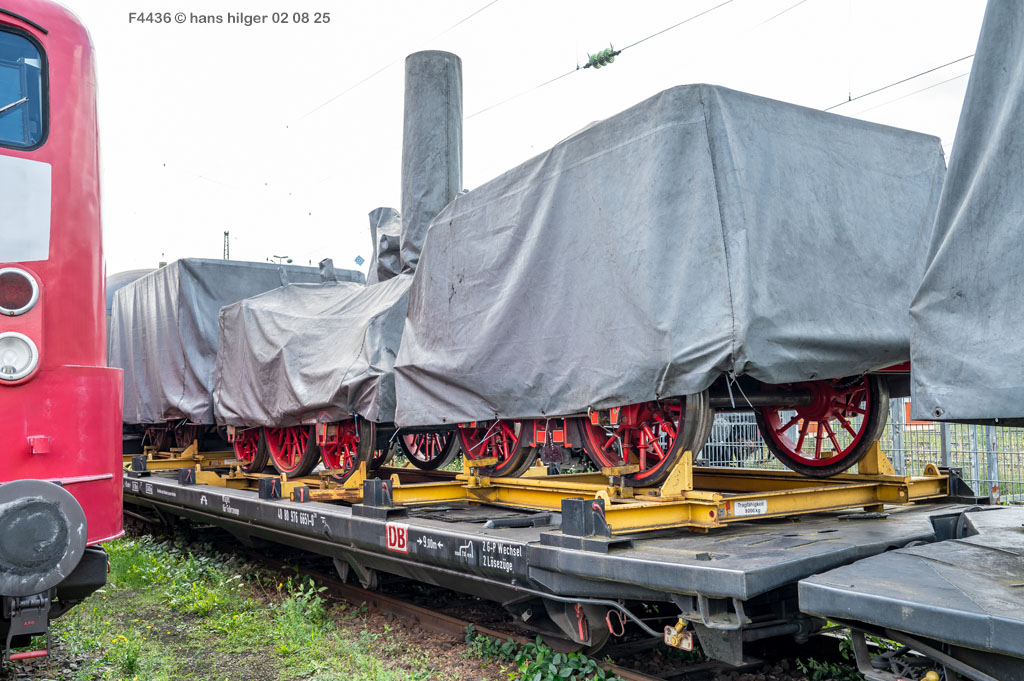 <163> Auch auf den Freiständen an der Drehscheibe stehen noch einige interessante Exponate<164> So zum Beispiel die Neubaudampflok 82 008, die erst 1951 gebaut wurde und schon 1971 wieder abgestellt<165> Und auch sie ist schon viel länger Denkmal als Betriebslok, dieses Bild aus Lingen/Ems ist schon von 1974!<166> Ja, auch von ihr hat etwas den Weg in Sammlerhand gefunden<167> Daneben stand am Tag meines Besuches E19 12, die ebenfalls die gründliche Aufarbeitung von 1985 einigermaßen behalten konnte. Sie ist historisch SEHR korrekt geschmückt mit zeitgemäßem Zierrat, der aber einen Haken hat . . . normalerweise. Von ihr habe ich leider keine alten Bilder. Sie trägt übrigens noch ihre alten “Schlafaugen”-Scheinwerfer, die wir weiter oben bei der E18 03 vermißt hatten > SO sahen sie eben aus, die “großen” Lampen der E18 und 19 (und der SVt und 01.10 etc)<168> Und daneben steht 140 423, eine der derzeitigen Betriebsloks des Museums, und nun sehen wir, daß da hinten rechts noch ein KLV 53 steht . . . den wollen wir natürlich nicht vergessen, aber erst noch ein Portrait der 140:<169> Ein klassisches Prtrait aus 2017 (Bochum-Dahlhausen), aber leider kein altes Bild von ihr im Archiv<170> Nun der “Klv”: Auch dieser Klv 53 Nummer 0663 gehört zum Museumsbestand. “Klv” ist die Bahn-Abkürzung für Kleinwagen mit Verbrennungsmotor. Dieser hier wurde bei Robel gebaut in 1977 und gehörte bis zu deren Auflösung zum Verein in Oberhausen um die 41 360<171> Dann kommen wir zur museumseigenen E71, die derzeit leider draußen stehen muß. Weiter oben haben wir ja bereits die zweite erhaltene Lok dieser Baureihe aus Dresden gesehen (was wieder eine Verbindung nach “drüben” ist) und ein Triebgestell einer weiteren E71<172> Und zu DIESER E71 19 hier habe ich wieder ein sehr altes Bild auf Lager: Wie wir den Daten entnehmen (siehe Link bei Bild 171), war diese Lok bereits 1956 abgestellt und 1958 ausgemustert worden, wurde aber durch das Wirken einer unsichtbaren Hand nicht zerlegt, sondern viele Jahre lang an verschiedenen Standorten hinterstellt, bis die Zeit tatsächlich reif war für eine museale Erhaltung. Einer dieser Standorte war in den Siebziger Jahren des letzten Jahrhunderts das Bw Neuenmarkt- Wirsberg in Bayern, in dem sich heute das DDM (Deutsches Dampflok-Museum) befindet. Und genau dort hatte ich im Jahre 1973 einmal Zutritt und konnte einige der dort hinterstellten Fahrzeuge ablichten; Eines dieser Bilder haben wir ja weiter oben bereits gesehen, siehe Bild 27 (98 307). Ich konnte ja damals nicht im entferntesten ahnen, daß ich 50 Jahre später immer noch eine Gelegenheit haben würde, die Lok zu knipsen, damals stand ich erstmals sprachlos vor einem solchen Dino . . .<173> Ja, was ist denn das da hinter der E71 ???<174> Dort steht die schönste, die größte, und die wertvollste Museumslok, die die Bahn neben dem 601 überhaupt zu bieten hat, es ist die ehrwürdige 01 1100 alias 012 100-4, die planmäßig zuletzt 1975 unterwegs war im Emsland, die danach aber viele Jahre lang Fans glücklich gemacht hat bei Sonderfahrten – Bis ein Drama um Zuständigkeiten und ein gestohlenes Betriebsbuch einen vorläufigen Schlußstrich unter alle Bemühungen gesetzt hat, sie wieder ans Laufen zu bringen. Seitdem steht sie hier in Koblenz und Niemand weiß so recht was mit ihr anzufangen dort . . . besser wird sie dort im Freien natürlich ebenfalls nicht, obwohl sie zur Zeit gut gepflegt und etwas aufgearbeitet wirkt<175> Dies ist eine meiner ältesten Aufnahmen von ihr: 012 100 am Reparaturschuppen im Bw Rheine<176> Und das ist eine meiner schönsten Aufnahmen von ihr: In Hanekenfähr mit dem E 3260, dem ersten und einzigen Zug, der schon einen beige/türkisen y-Wagen im Zugverband dieser Zeit (um Ostern 74 herum) hatte. Dazu hab ich jahrelang behauptet, wir sähen eine Dampflok vor einem Atomkraftwerk, das war ja spektakulär, aber ganz richtig ist es nicht, denn: Das Atomwerk befindet noch dahinter, hinter dem konventionellen Kraftwerk, und ist von hier aus nicht sichtbar<177> Und sie ist auch die schwerste Lok, die die Bahn zu bieten hat. Da paßt die Bildnummer “177” ganz gut = Sie wiegt nämlich genau 177 Tonnen, wenn sie betriebsbereit ist. Und das kommt nicht daher, daß ich als Dickmops mit auf die Waage getreten wäre! Ich stehe aus einem anderen Grunde dort: Ich bin 1,86 groß und muß mich schon anstrengen, die Hand auf die zwei Meter hohen Räder der Lok legen zu können . . . ZWEI Meter sind schon eine gewaltige Hausnummer, die man sich ohne diesen Größenvergleich kaum vorstellen könnte. Und damit wir uns so ein Ungetüm nochmal unter “richtigem” Dampf vorstellen können, zeige ich noch ein paar Betriebsaufnahmen von ihr, denn auch hier bin ich Zeitzeuge und habe viele schöne Erinnerungen an sie . . .<178> Wie war das mit dem Rennpferd, das vor dem Start mit den Hufen scharrt ??<179> Da geht mir das Herz auf bei solchen Bildern, sorry. Ein solches Erlebnis ist nicht zu toppen durch die “tote” Lok im Museum in Koblenz, da liegen Welten dazwischen. Kann man das irgendwie verstehen ?<180> Nein, da kommt das beste Bild im Museum nicht mit, SOWAS hier muß man erlebt haben, um es zu beurteilen