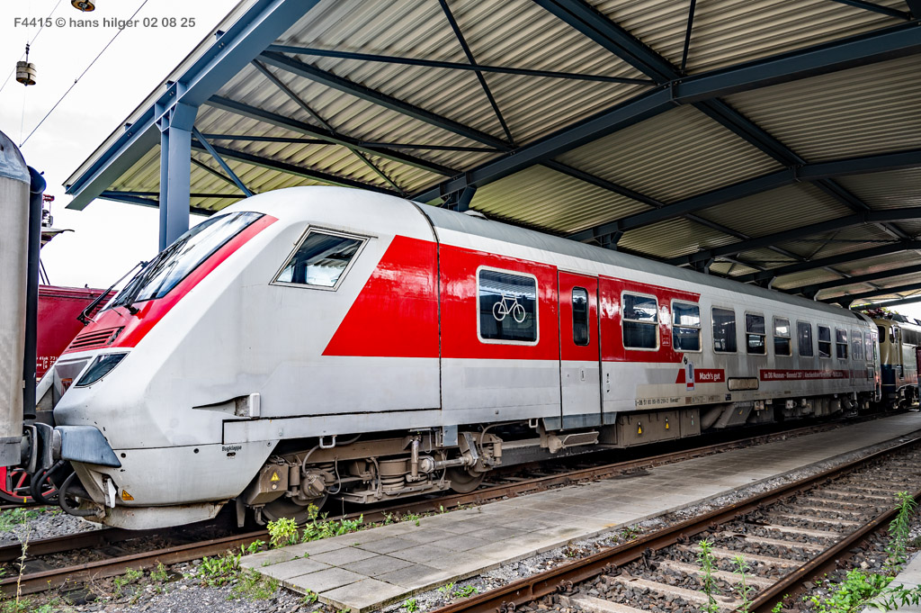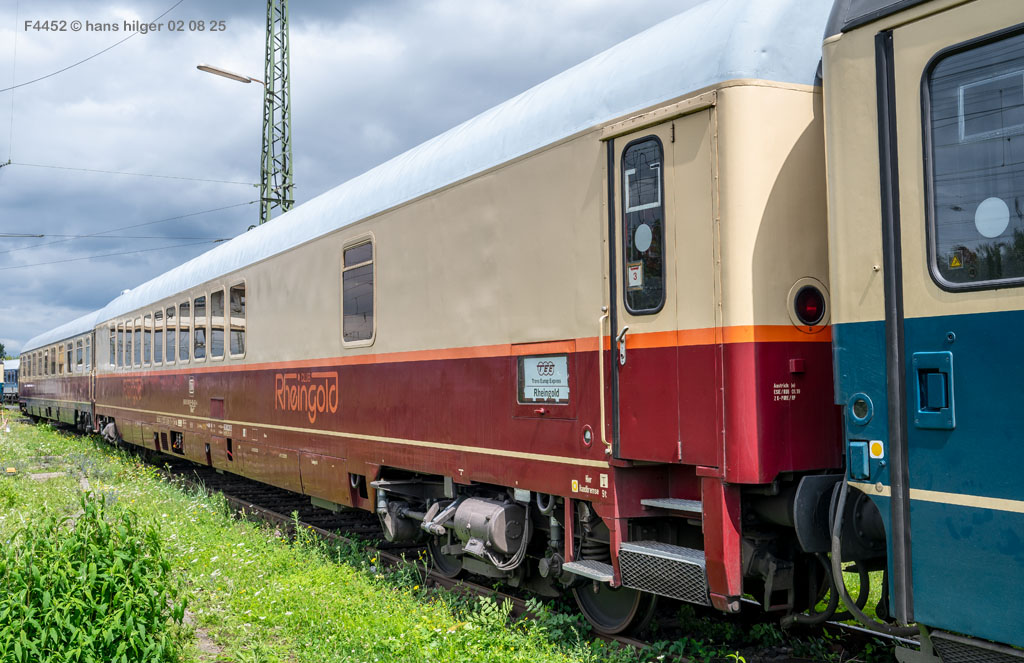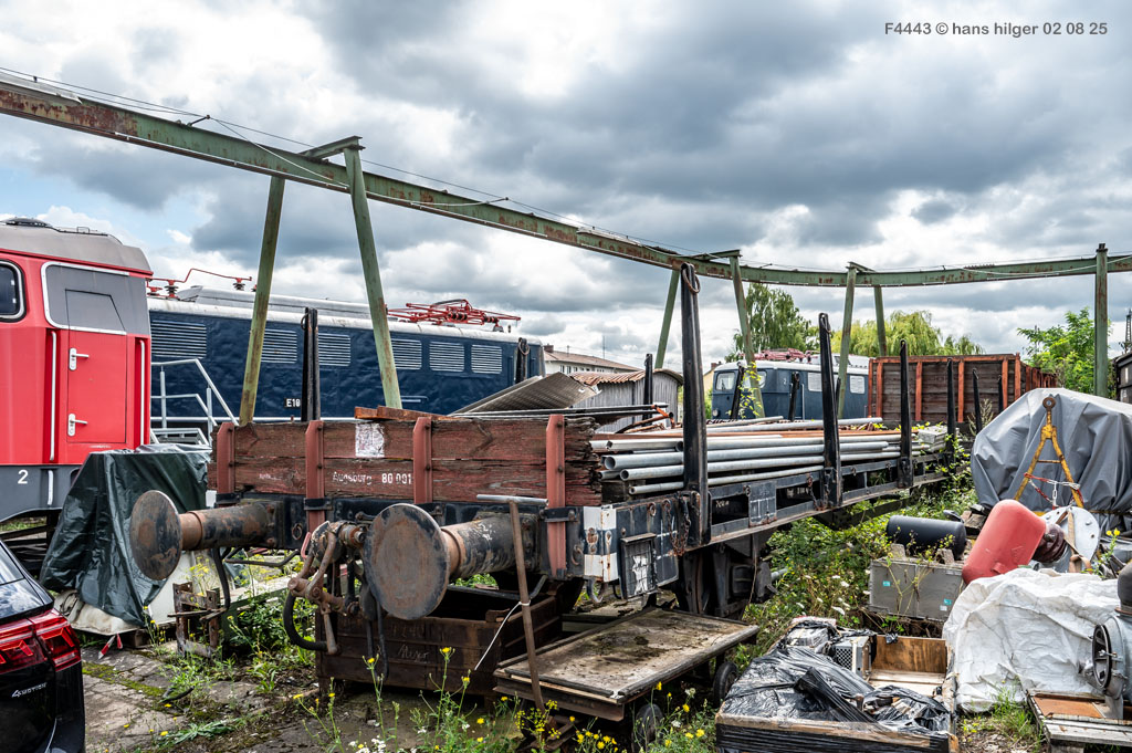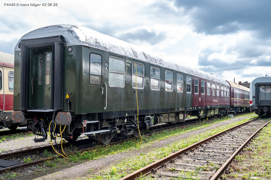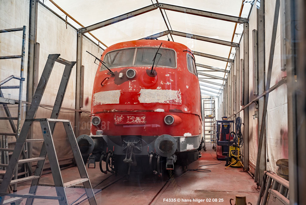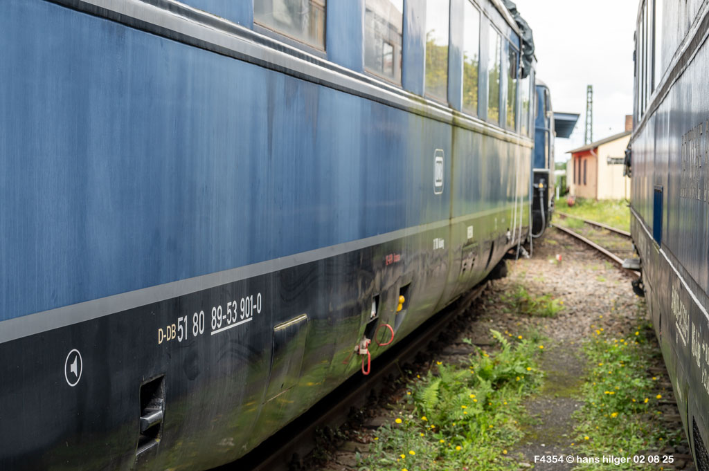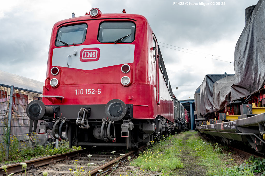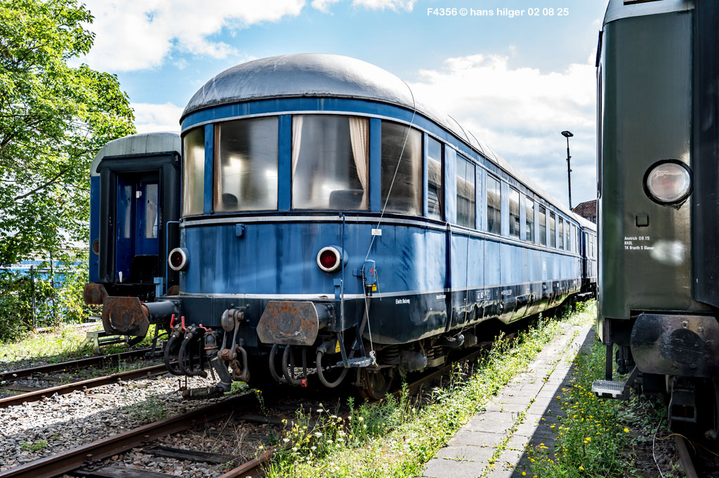 <181> Hier zum Beispiel: Da steht was hinter dem Busch. Und das sieht verdammt nach dem 614 005 aus, der sich dort versteckt, oder der dort versteckt gehalten wird. Wir vermuten also ein Fahrzeug, das nicht sichtbar ist . . . Kein anderes mir bekanntes Fahrzeug sieht SO aus, ich bleibe bei 614 005<182> Da muß auf jeden Fall 140 128 = E40 128 erwähnt werden, die in alter Farbe betriebsfähig ist für das Museum und oft Überführungen macht. Wie hier mit 212 372, V160 067 und E44 002. Für 212 372 gilt ähnlich: Auch sie war im August 25 nicht anzutreffen<183> V160 067 alias 216 067, mustergültig optisch hergerichtet mit alter Nummer, im Sommer 25 nicht anzutreffen<184> Sie war im August 25 nur aus weiter Entfernung im Abstellbereich in Lützel auszumachen = 103 235, siehe Bild 119<185> Sie hier war am Tag des Rundgangs nicht anwesend, weil sie mit einem aktuellen Sonderzug unterwegs war auf großer Fahrt. Hier sehen wir sie noch als DB-Betriebslok des Bw München 1, die gelegentliche Bewegungsfahrten machte und ansonsten als Reserve zur Verfügung stand. Sie wird gleich aufbrechen in Tagesrandlage mit einem Kurz-IC nach Salzburg. Es ist die 103 mit der höchsten Ordnungsnummer = 245 > Im Museum Koblenz befinden sich also die ERSTE 103 (103 001) und die LETZTE 103 (103 245)<186> 111 040, hier noch als Heizlok in Düsseldorf, im August weit hinten im Abstellbereich von Lützel (siehe Bild 119). Ob sie tatsächlich Museumsbestand ist, ist unklar, vorrangig war sie Ersatzteilspender für die 001<187> Auch sie gehört zum Bestand, war aber nicht zu finden = 120 101<188> Auch sie gehört eigentlich zum Bestand = 181 001, hier im Museum des Sommers 2004<189> Auch sie hier: 181 201 in altblau, die seinerzeit getauscht worden war gegen die 206, müßte irgendwo sein<190> Hier sehen wir den Et 430 414 im Museum Lützel. ABER: Der Triebzug war derart marode, daß er im Ganzen nicht zu retten war und wurde im Museum teilweise verschrottet, nur dieser Kopf 414 ist in schlechtem Zustand übergeblieben und heute in Horb untergebracht. Sowas gehört zu einem überfüllten Museum leider dazu, daß man sich ggfs auch mal von etwas wieder trennen muß, wenn die Umstände es erfordern und die Unterhaltung zum Faß ohne Boden wird<191> Die Mehrsystemlok 184 003, für eine kurze Zeit noch als E410 003 ausgeliefert, auch sie ist wohl auf Bild 119 erkennbar<192> Auch diese beiden waren einige Zeit im Museum, der Verbleib ist mir unbekannt<193> Auch sie sollte in Lützel sein = 217 014, hier mit 225 094 im Januar 2006 in Mühldorf<194> Sie gehört sicher zum Museum und ist sogar betriebsfähig: 218 137. Wo ist sie?<195> Auch sie gehört zu Lützel, sie steht noch weit hinter Bild 119 versteckt<196> Auch von dieser Baureihe sollte einer erhalten sein in Lützel: BR 610. Selbst 610 001 wurde sang- und klanglos zerlegt beim Steil in Ehrang, das ist gar nicht so weit von Koblenz entfernt und führt wahrscheinlich sogar an Lützel vorbei. Auch diese Fahrzeuge hier, gesehen mit 155 196 in Duisburg-Rumeln, sind in Lützel vorbeigekommen auf dem Weg nach Ehrang zum Schrott. Und dabei fiel auf:<197> Dies ist der 610 002/502. Ohne erkennbare Schäden, sogar ohne Grafitti. Er ist (scheinbar) in einem besseren Zustand als der in Koblenz schonmal zu sehende 610 010, der wohl zum Museumsbestand gehört, aber versteckt wird. Hätte man da nicht tauschen können?<198> Und beispielhaft für viele Wagen, die zeitweilig im Museum waren und wieder abgegeben oder anderweitig genutzt wurden, sollen diese beiden hier stehen, geknipst im Sommer 2004 = Hier der “99 164 Köln”<199> Und hier der “30 088 Köln” AB4ymg (soweit lesbar)