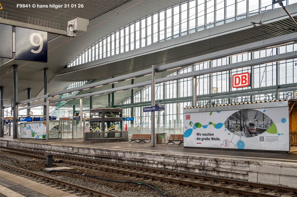 Wiir kamen in der zweiten Jahreshälfte 2023 zu einem dritten Teil der Dokumentation zum Neubau des Duisburger Bahnhofes. Der erste neugebaute Bahnsteig 12/13 ist zwar noch nicht fertig, aber bereits eröffnet, und die Abrißarbeiten am nächsten anstehenden Bahnsteig 10/11 haben schon begonnen. Deshalb werden die Galerien zum Neubau von 12/13 und die vom Abriß 10/11 parallel aktualisiert, so wie ja auch die Arbeiten parallel verlaufen. Hier also die Doku zu Abriß und Neubau des zweiten neuen Bahnsteigs, die aber nicht so umfangreich ausfallen soll wie die Erste. Bitte schön, fangen wir an: