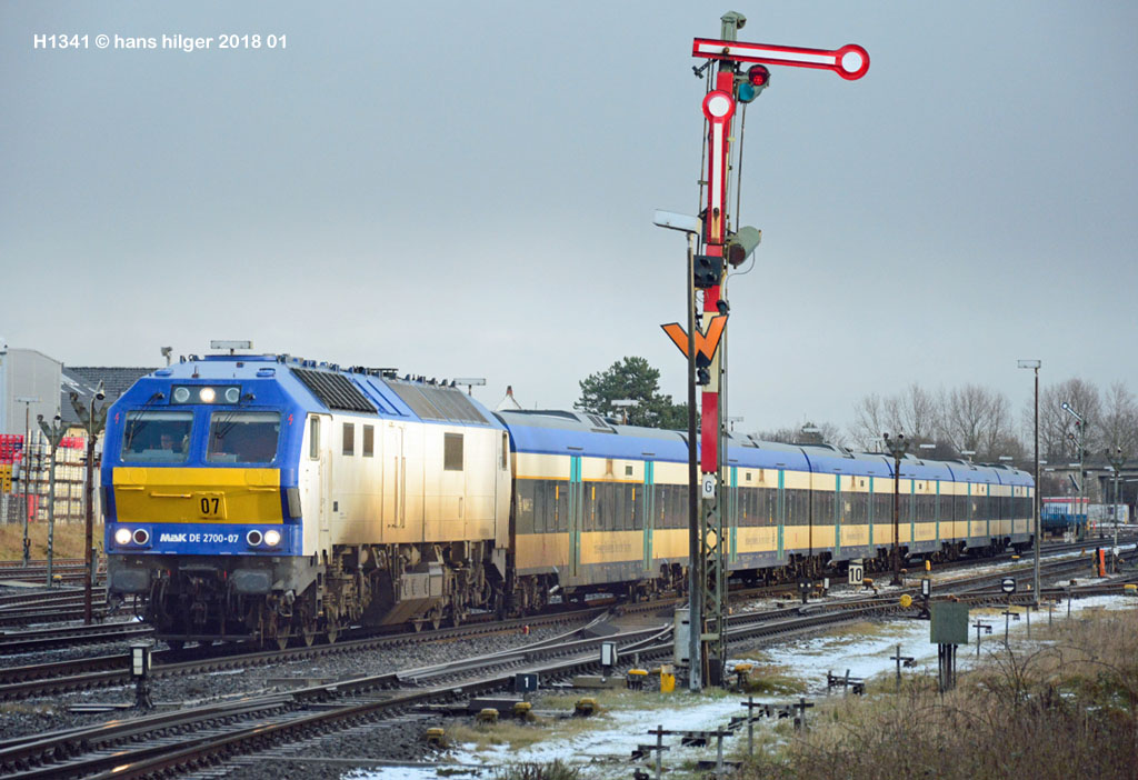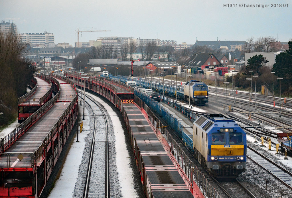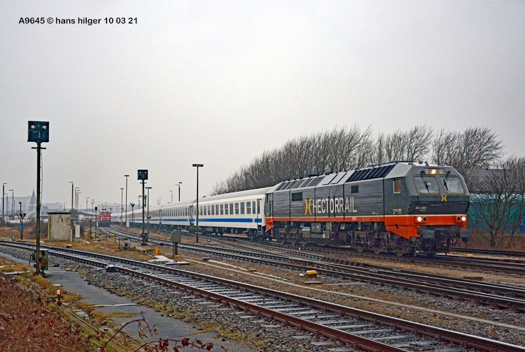 Diese so ungewöhnlich anmutende Lokbaureihe ist tatsächlich exotisch, besitzt sie doch ein Design, das typisch norwegisch ist, was seinen guten Grund hat: Die norwegische Staatsbahn hat die Lokomotiven 1992 bei MaK in Kiel bestellt mit den typischen nordischen Designvorgaben. 12 Fahrzeuge wurden 1995/96 gebaut, schon mit Elektronik von Siemens, das später MaK Kiel übernommen hat. Die Loks wurden 1997 nach Norwegen geliefert, aber bald schon zeigte sich, daß sie den rauhen Bedingungen dort nicht gerecht werden konnten, Norwegen kam mit ihnen nicht klar. Alle 12 Loks wurden 1999 an Siemens zurückgegeben und fortan als Mietloks im Siemens- Lokpool geführt, dann aber an Vossloh weiterverkauft, dort umgebaut und angepaßt und seither sind die Fahrzeuge in Deutschland im Einsatz bei verschiedenen Privatbahnen, die unterschiedlich gut mit ihnen zurechtkommen. Aktuell läuft ein Geschäft, bei dem HectorRail seine vier verbliebenen Loks an einen anderen Anbieter weiterverkauft, viel bekannter sind aber die drei Loks, die im Syltverkehr mit den “blauen” Autozügen seit vielen Jahren unterwegs sind, die mit etwas Glück aber auch bundesweit im Bauzugverkehr angetroffen werden können.
