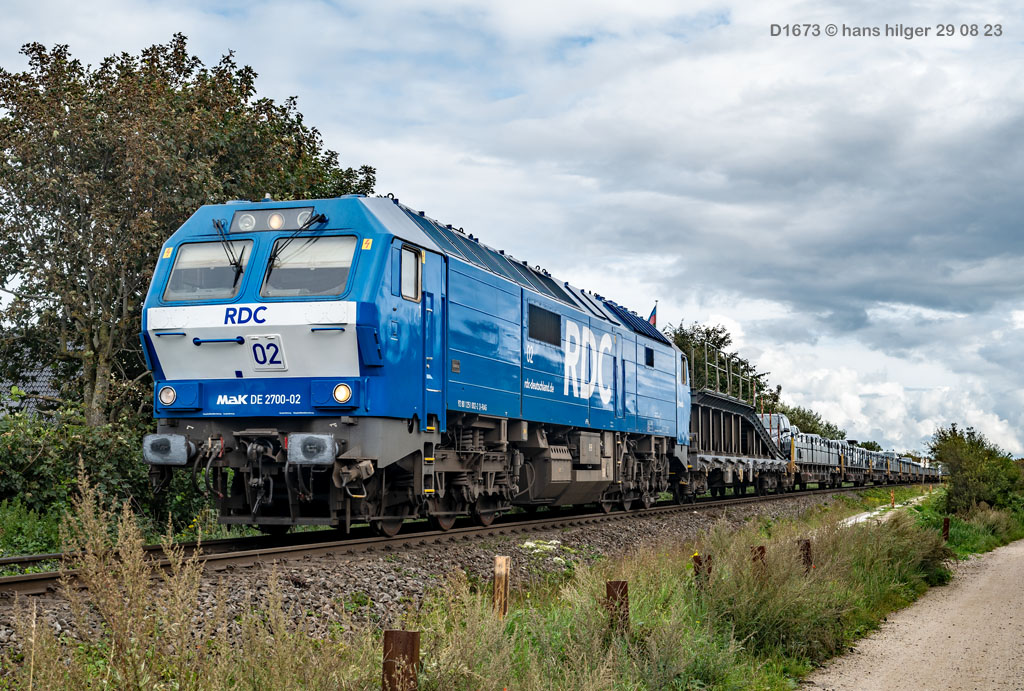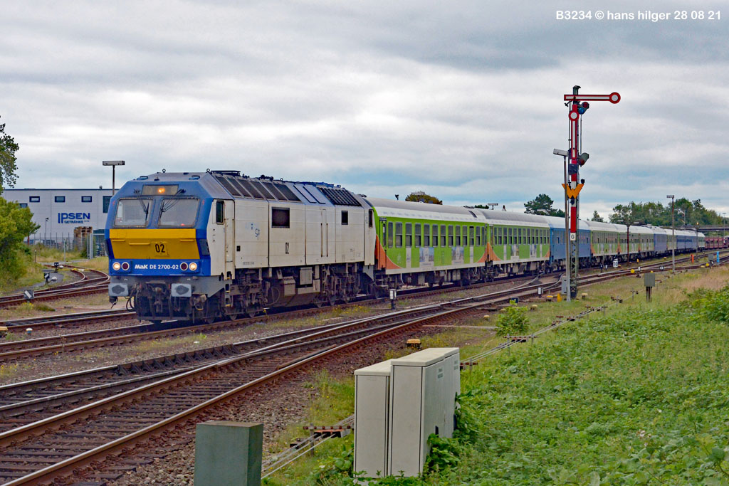 <11> Hier begegnet uns die 02 als NOB- Lok in Morsum Damm auf dem Weg zum festland, es ist das älteste Foto von ihr in meinem Archiv<12> Später fehlte ihr das NOB- Logo und sie ist für RDC im Syltverkehr aktiv<13> Anfangs sogar mit speziellen Begleitwagen, die aber schnell wieder fallengelassen wurden<14> Einfahrt Keitum mit einem klassischen Signal, das von beiden Seiten die Stellung anzeigt<15> Ein Portrait aus Niebüll als RDC- Lok bei der NEG<16> Im Abstellbahnhof Tinnum begegnet sie der Kinderlok 03 mit Ersatzwagen aus dem SH- Expreß<17> So sah sie jahrelang aus und war fleißig und zuverlässig (Einfahrt Westerland)<18> Und gelegentlich durfte sie zur Abwechslung auch Sonderzüge fahren (ebenfalls Einfahrt Westerland)<19> Dann plötzlich in 2023 nach einer Revision war sie in den blauen RDC- Farbtopf gefallen<20> Und dies dürfte auch noch der heutige Zustand sein (Stand 2025/11), weiterhin im Syltverkehr für RDC