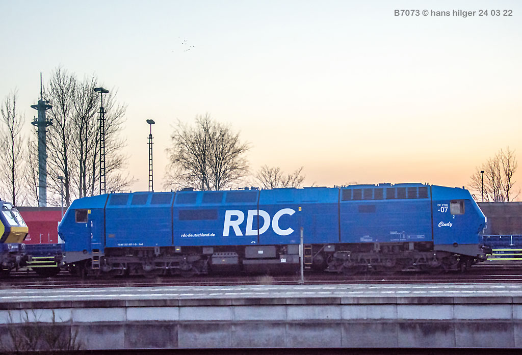 <49> Die 07. Eine Aufnahme aus 2004, wieder aus dem AW Neustrelitz (heute OMB). Bildautor auch hier Manni Kantel†, der mir die Dias zu Lebzeiten überlassen hat, aber ohne genaue Angaben. Zu dieser Zeit gehörten alle zwölf 251er schon nicht mehr Siemens, sondern waren an Vossloh verkauft und gingen von dort aus an die Marschbahn (NOB) als Mietloks<50> So sahen sie dann etliche Jahre aus und die 07 war eine von Vielen<51> Auch 2017 war sie noch dort anzutreffen, an diesem Novembertag sogar mit Sonne auf dem Hindenburgdamm, was sooo gut war, daß ich gleich zwei Aufnahmen dieser Szene vom Hindenburgdamm zeigen möchte<52> Kurz nach diesen Aufnahmen wurde sie verkauft an HectorRail, wurde Grau/Orange und hieß fortan “861.004 Obelix” – Von ihr liegt mir kleider kein Bildbeweis vor, sie sieht aber so aus wie die bereits gesehene HC- Lok<53> Dieses Bild war vermeintlich mein letztes Bild von ihr in Blau/Weiß, noch im selben Monat ging die Lok an Hector, blieb aber wohl noch in Niebüll im Einsatz, dieses Bild ist laut der Exifdaten vom 21. Januar 18<54> Daher war ich üebrrascht, die Lok auch am 22. März 2018 noch in Tinnum antreffen zu können mit einem Ersatz- Wagenpark. Irgendwann ging sie jedenfalls gesichert zu Hector und wurde “Obelix”, ein Name, der zu ihr paßt . . .<55> Vier Jahre später war sie von Hector zurückgekommen nach Niebüll, die Farbe war noch frisch, als ich sie vom ankommenden Autozug aus erstmals wahrnahm in RDC- Blau und mit den neuen Ehrennamen “Cindy” = Aus Obelix wurde Cindy . . . vom Dickmops zur zierlichen Dame . . . verrückt . . .<56> Doch wenige Tage später hatte ich das Glück, daß die Reservelok wirklich gebraucht wurde und Autozüge für RDC zur Insel brachte, dies hier ist die Rückfahrt ihres allerersten Umlaufs für RDC in neuer Farbe<57> Und sie kam nochmal zurück zur Insel für dieses Portrait am selben Tage<58> Später gelangen noch viele schöne Bilder von ihr, von denen ich dieses mal herausgefischt habe als Stand des aktuellen Zustandes = So dürfte sie auch heute (2025/11) noch aussehen und für RDC unterwegs sein auf der Insel ODER irgendwo als Leihlok im Gleisbaugeschäft