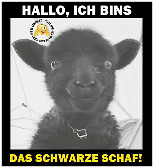 (Das Bild vom schwarzen Schaf ist ein vielfach vorhandener Netzfund, Quelle: Facebook und Google und zahlreiche weitere Anbieter)