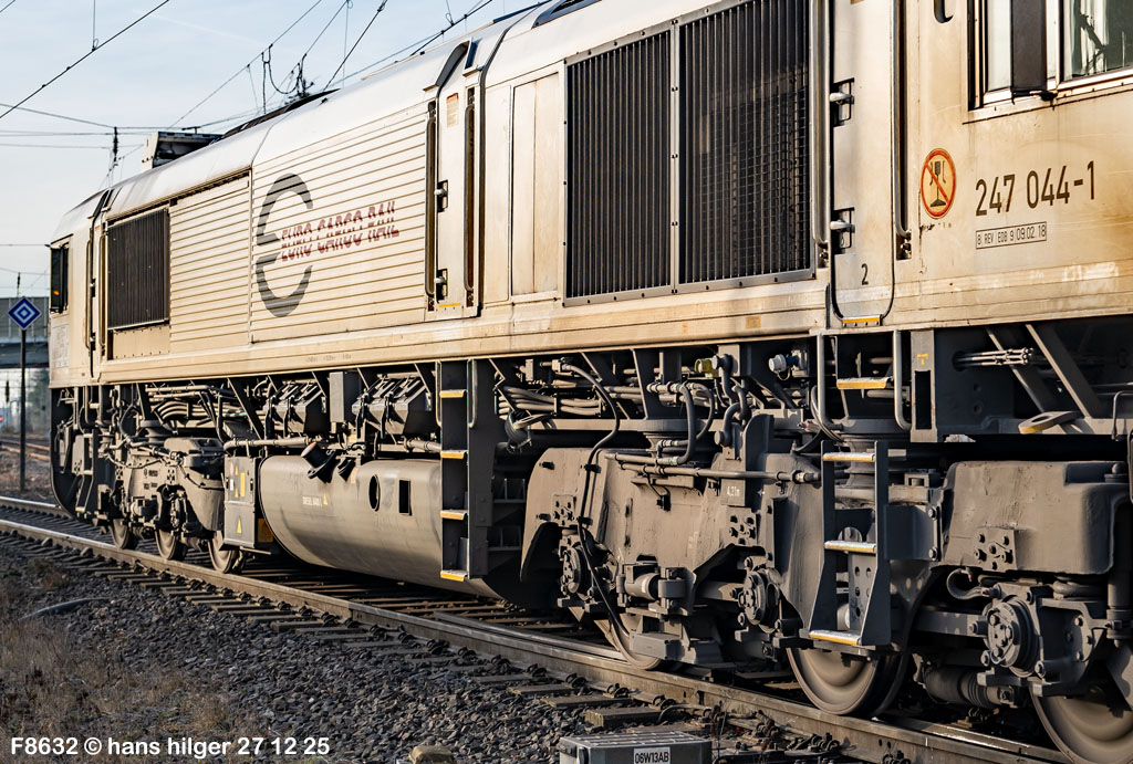 <7> Aber dies hier ist NEU und fiel im Dezember 2025 erstmalig auf: Auch einzelne Loks der Class 77, also die Baureihe 266.4 oder 247 oder 077, tragen nun Fristen von durchgehenden 8 Jahren, was die Bahn bisher immer vehement abgelehnt hatte; Nach altem rechts hätte diese Lok zum Zeitpunkt der Aufnahme bereits eine Verlängerungs- Untersuchung hinter sich hätte haben müssen, die nun wegfällt genauso wie die zweite Verlängerung