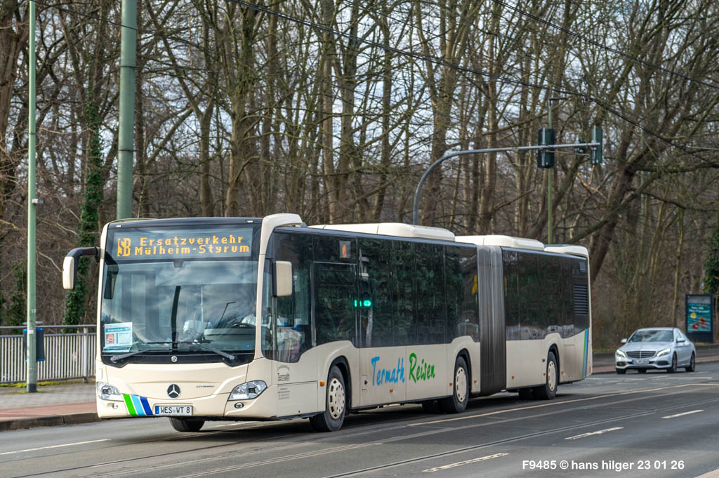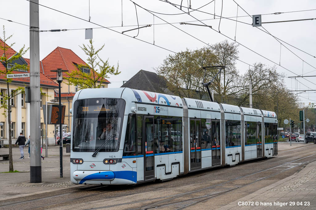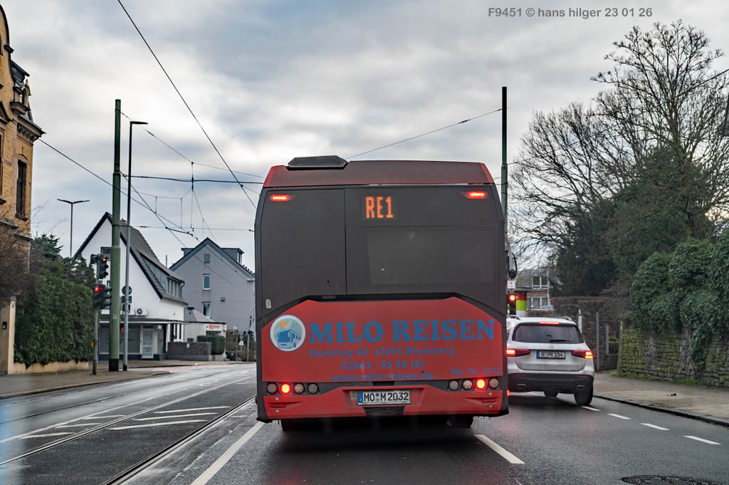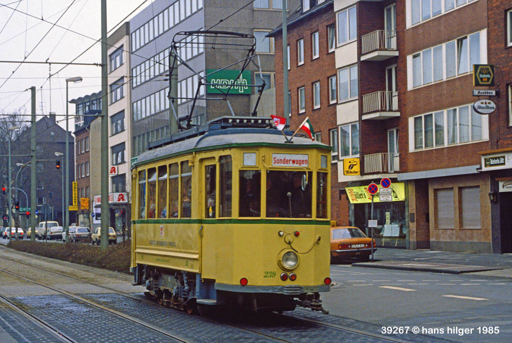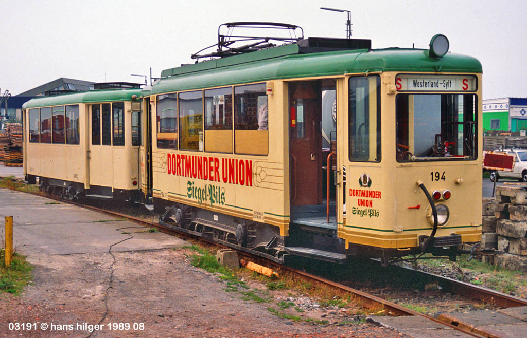 <75> Auf der Straße den “RE 1” vor der Nase ?? Ja, das gibts. Als Schienenersatzverkehr in Duisburg<76> Duisburg kann aber noch viel mehr: Hier gibt es 2026 funktionierende Wasserstoffbusse! Zum Beispiel den DVG 2561, der täglich im Einsatz steht und offenbar problemlos seinen Dienst verrichtet<77> Auch der DVG 2560 geriet mir vor die Linse, und zwar am Hauptbahnhof<78> Ein weiterer Fremdbus als Schienenersatz für den RE 1<79> Und noch einer, am selben Motiv. Diesmal als S 1- Ersatz nach Styrum<80> Ein schönes Strabamotiv von der Stadtgrenze zwischen Mülheim und Duisburg, es ist Tw 2025. Das hier ist übrigens eine ganz besondere Ampel, schaut mal hier . . .<81> An dieser Ampel direkt vor dem Eingang zum Duisburger Zoo leuchtet ein Bergmann als Ampelmännchen!<82> Der fast flammneue DVG 2040 in Duisburg an selber Stelle am Zoo<83> Und auch noch einige der alten Duisburger Bahnen sind Anfang 2026 noch unterwegs, hier Wagen 1041<84> Nochmal eine S 1 als Gummibahn, und wieder mit ortsfremdem Fahrzeug<85> Ein DDR- Oldtimer! Aber einer, der nur annähernd zum Nahverkehr zu zählen ist = Es ist ein Wagen der Armee, also der “Nationalen Volksarmee der DDR NVA”, gesehen kurz nach der Einheit in Nordhausen, wo er verkauft werden sollte <86> Gehen wir nochmals über 50 Jahre zurück: Nach Linz in Österreich!<87> Ein dreiteiliger Zug, angeführt von Tw 123 in Plaue am See, Neufünfland, nach der Wende. Meine Mitfahrer im Auto waren not amused, als ich unvermittelt anhilet und heraussprang, weil diese Bahn uns entgegenkam . . .<88> Weiter oben haben wir ja schon was gesehen aus Wanne- Eickel . . . Hier gibts noch einen Nachschlag: Zwei modernere Wagen aus 2023, einmal in “neutral” = Nummer 142, und einmal . . .<89> Einmal als Werbewagen = Nummer 140. Auch diese Fahrzeuge haben offenkundig “keine Räder”, sehen aber nicht so futuristisch aus wie die eben gesehene Bahn aus Wien<90> Eine der schönsten Straßenbahnen, die ich kenne ‼️ Wir sehen den Duisburger Wagen 177, der eine zeitlang als Partybahn im Einsatz war, aber der nicht fit gemacht worden war für die Tunnelstrecke, sodaß er abgegeben werden “mußte” . . . komischerweise war dies auch der erklärte politische Wille der Führung der DVG, sonst hätte es bestimmt einen Weg gegeben . . . <91> Was aus ihm wirklich geworden ist, weiß ich nicht, aber ich hoffe sehr, es geht ihm irgendwo gut!<92> Ein weiterer Oldie in Duisburg, aber dies war ein Gastfahrzeug aus Wuppertal von der “Bergischen Museumsbahn”<93> Ich weiß nicht mehr den Anlaß, aber es gab diverse Sonderfahrten zu der Zeit<94> Ein Mülheimer Wagen aus der Stadt an der Ruhr, unverkennbar. ABER weitab seines gewöhnlichen Lebenraumes gesichtet, und daher sicher voller Heimweh: Wir sind bei der Firma STRAIL in Tittmonning in der Nähe von Salzburg direkt an der Grenze zu Österreich. Dort gab es eine zeitlang (vielleicht auch heute noch?) ein technisches Denkmal in Form des Tw 252 aus Mülheim. STRAIL ist die Firma, die Bahnübergänge baut, bzw. die Gummieinlagen dafür = STRAIL ist eine Kreuzung der beiden Worte Street und Rail, also so ähnlich wie Loko-Motive . . . okay, nur so ähnlich . . . <95> Wir kommen niochmal nach Österreich in den Neunzigern: Da gab es in Graz natürlich nicht nur aus Duisburg importierte Fahrzeuge, sondern auch eigene, die schon jahrelang dort warem, wie diesen Tw 267, bei dem ich mich in bezug auf den hersteller nicht festlegen möchte, ist das vielleicht auch ein DÜWAG, oder eher ein Österreicher?<96> Gleiches gilt für den Tw 551, ebenfalls in Graz 1994<97> Und leider gehört auch solch ein Bild zum Nahverkehr dazu: Die Wiedereingliederung in den Rohstoffkreislauf, den die meisten Altfahrzeuge erfahren, die nicht mehr gebraucht werden. Hier hat es den Mülheimer Wagen 279 erwischt, er hat seine letzte Ruhestätte in Opladen beim Bender erreicht<98> Ob dieses sehr alte Bild aus 1973 oder 74 oder vielleicht auch 75 auch die Fahrt zu einem Schrotthändler ist oder vielleicht doch die Reise in ein neues Leben zu einem Museum, ist mir völlig unbekannt. Ich sah den mit einer Wedauer 50 bespannten Zug zufällig vom Bw aus langsam durch den Güterbahnhof rollen und konnte die Knipse noch gerade hochreißen = Wir sehen einen komplett erhaltenen Wagen “Mülheim/Ruhr 201” und offenbar auch einen Unfallwagen links, zu dem ich aber NIx Näheres habe<99> Aber die Geschichte zu diesem Bild, die kenne ich! Und die ist so unglaubwürdig, daß ich sie eigentlich gar nicht erzählen darf, ihr glaubt das nicht und werdet fragen, ob ich falsche Tabletten genommen habe . . . NEIN! . . . An diesem Dortmunder Wagen 194 steht nicht nur “Westerland/Sylt” dran, das Bild IST auch in Westerland/Sylt entstanden ‼️ Auf Sylt! Wie kommt denn ein Dortmunder Wagen nach Sylt? Ganz einfach = Mit eigener Kraft! Undf das ist jetzt kein Scherz: der Wagen war und ist nach EBO zugelassen und kann mit einem Generator den Strom liefern, den er zum fahren braucht. Und damit ist er tatsächlich von Dortmund bis nach Sylt gefahren und wieder zurück, unfaßbar, aber wahr. Den Wagen gibt es heute noch im Museum Mosskamp in Dortmund, wo man sich die Geschichte mit Sylt groß und breit (und ganz stolz) erzählen lassen kann . . . Stellt euch vor, ihr standet als Wattwanderer in Klanxbüll und wolltet mit dem nächsten Zug zurück zur Insel, da gehen die Schranken runter und eine STRASSENBAHN aus Dortmund kommt vorbeigefahren mit winkenden, feixenden Mitfahrern . . . Ihr würdet doch erstmal nach einem Eierlikör fragen und die Brille putzen, was ??