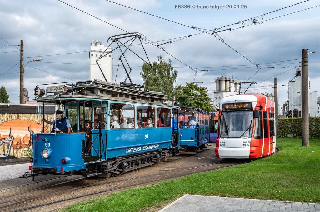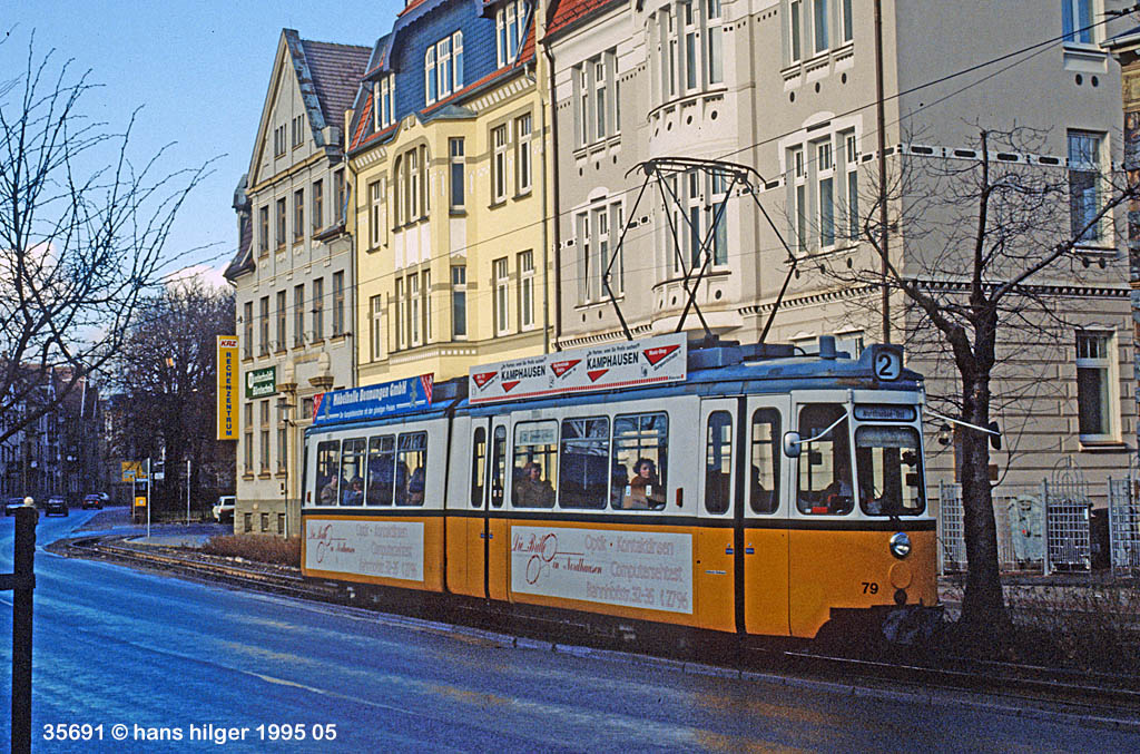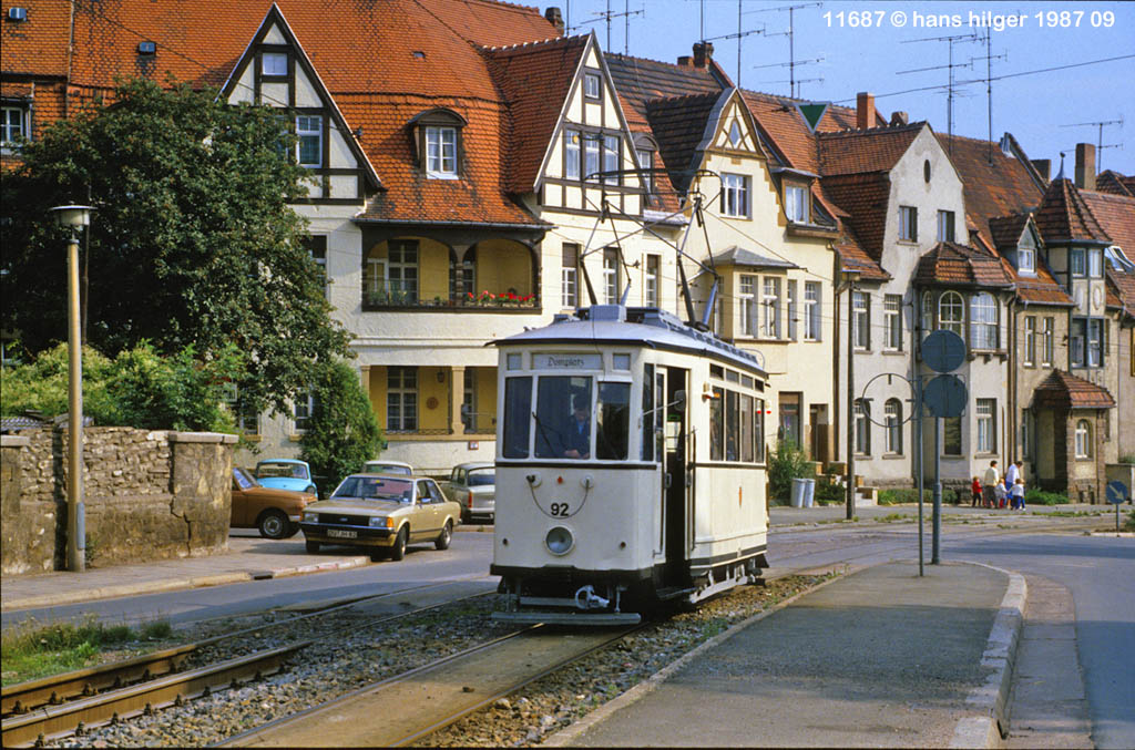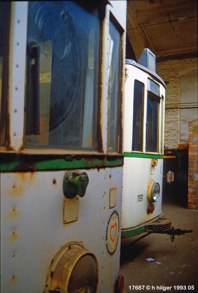 <50> Nun sind wir wieder ganz woanders: Denkmal 2008 in Mettmann, Bj 1909<51> Nun sind wir in Ettlingen Stadt und sehen im Sommer 1976 (!) den Tw 18, ebenfalls ein DÜWAG<52> Dies ist zwar ein sehr alter Wagen, aber nicht zu alter Zeit gesehen: Dieser Wagen 23 der “Hamborner Strasenbahn” stand 1992 im Betriebshof Grunewald der DVG. Soweit ich erinnere, gibts ihn immer noch, aber nicht fahrbereit <53> Das war oder ist schon ein tolles Teil! Und stellt einen Typ von Straßenbahn dar, den ich für besonders formschön und gelungen halte<54> Auch dies hier ist ein Wagen 23, aber einer, der viel weniger Glück hatte als der gerade gesehene aus Duisburg: Dieser hier gehört zu denen, die 1992 in Dessau außer Betrieb genommen wurden zu Gunsten der “neuen” aus Duisburg angelieferten Fahrzeuge. Hier steht er bereits nicht mehr auf Gleis, sondern im Dreck . . . und dort wird ihn in Kürze auch der Abbruchbagger treffen, er hat nicht überlebt<55> Und das gilt auch für ihn hier: Den Triebwagen 25 aus Dessau mit seinem passenden Beiwagen, beide aus DDR- eigener Produktion. Sie gingen in den Rohstoffkreislauf zurück<56> Der damalige Wagen Dessau 61. Ein Häuflein Elend. Aber die Totgesagten leben länger: Dieser Wagen 61 ist dem vernehmen nach in Dessau wieder aufgebaut worden und ein feines Schmuckstück, während die anderen Wagen auf dem Bild in den Kreislauf gingen, wer hätte das zur zeit der Aufnahme gedacht ?<57> Auch jetzt sind wir im Bereich der neuen 5 Länder, aber als von der Wende noch lange keine Rede war: Wir sind im Sommer 1984 in der DDR. Und dort begegnete mir zufällig ein selten zu sehender Arbeitswagen, der irgendwann einmal aus einem “Gotha”- Straßenbahnwagen entstanden war, und zwar aus dem Tw 786 aus Halle/Saale, das weiß man heute. Ich hatte nur schnell angehalten, knips, und war sofort wieder weg, bevor schlafende Hunde geweckt waren, die beiden Fahrer hier waren so überrascht, daß sie nicht sofort wußten, was nun zu tun sei, BIS sie es wußten, war ich schon wieder weg . . . das war meistens besser so . . . gerade Halle war da ein heißes Pflaster . . .<58> Aber solche Schätzchen gab es auch in meiner Heimat, und ich hab mich viel zu selten drum gekümmert, was mir heute leidtut. Dieser Arbeitslok ” DVG 100″ auf dem Betriebshof Scharnhorststraße in Kaßlerfeld hab ich nur dieses eine Bildchen gegönnt 1975 (da waren Farbdias noch sehr teuer)<59> Altes Fahrzeug zu modernerer Zeit, wobei “modern” schon wieder relativ ist . . . Aber mitten im Ruhrgebiet in Wanne- Eickel. Hier gelang mir 1995 ein Portrait eines sehr schönen und gepflegten DÜWAG- Fahrzeugs mit der Nummer “45”<60> Doch sofort fliegen wir wieder zurück in den Bereich der DDR, allerdings schon weit nach der Wende, also ohne Gefahr. Ein Museumswagen, ebenfalls aus DDR- Produktion, in Rostock bei einer Sonderfahrt<61> Und das war damals eine Sonderfahrt, an der ich die Ehre hatte, teilnehmen zu dürfen, daher gibt es mehrere Bilder von ihr<62> Und deshalb gibt es auch Bilder vom Fahrstand des Tw 46 aus Rostock<63> “Lokomotivbau Elektrotechnische Werke Hennigsdorf” > Jetzt wissen wir, wo der Wagen gebaut wurde = Es ist der in der DDR verbliebene Stammteil der AEG, der nach der Wende auch wieder zur AEG wurde <64> Ich weiß nicht, was aus dem Rostock 46 geworden ist inzwischen, weiß es Jemand ? <65> Der Werkstattwagen 557 aus Rostock<66> Und der Arbeitswagen 555 aus Rostock; Beide sind wahrscheinlich nicht mehr unter uns <67> Tw am Bahnhof Nordhausen kurz nach der Wende <68> Tw 106 am Bahnhof Nordhausen siebzehn Jahre nach der Wende !<69> Mitte der Neunziger in Nordhausen der Tw 79<70> der Tw 80 am betriebshof Nordhausen 1995<71> Ein Erfurter Oldie noch zu DDR- Zeiten 1987 bei einer Sonderfahrt = Tw 92<72> 1995 in Mannheim der Tw 88<73> Der Tw 70 in Wien, ein damals hochmodernes Teil “ohne Räder” . . . der bewegte sich wie von Geisterhand, sah aus wie ein Luftkissenfahrzeug<74> Damit kommen wir wieder in die Neuzeit zurück: Ein sehr altes Fahrzeug neben der hochmodernen Schwester in Krefdeld- Linn = Tw 93 u 49 alt neben Tw 666 neu, gesehen 2025