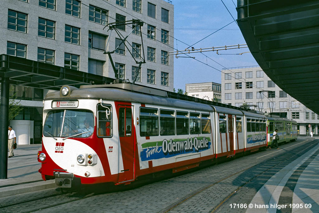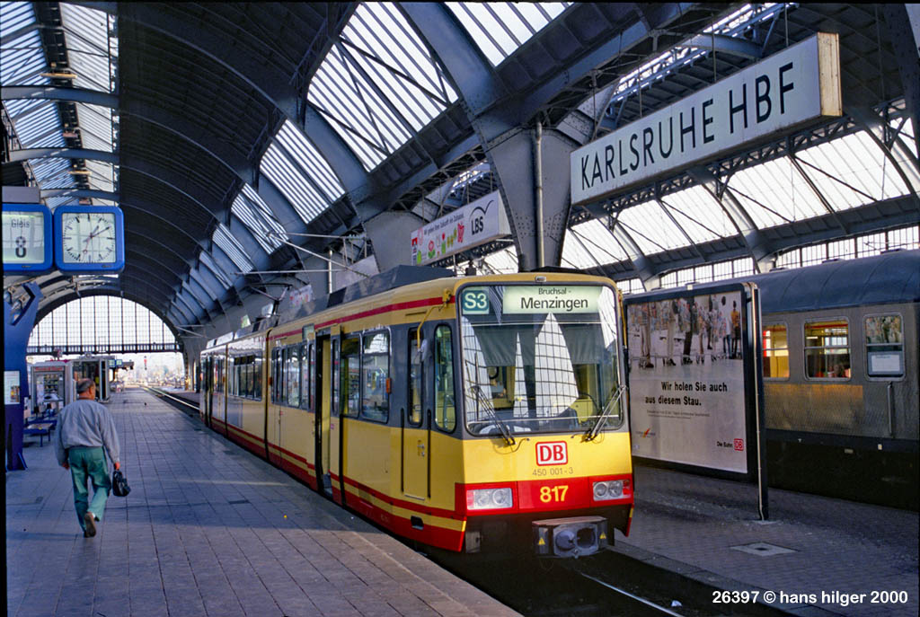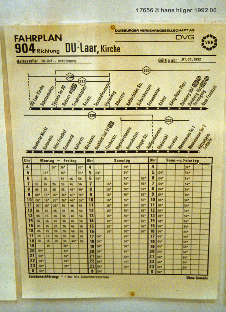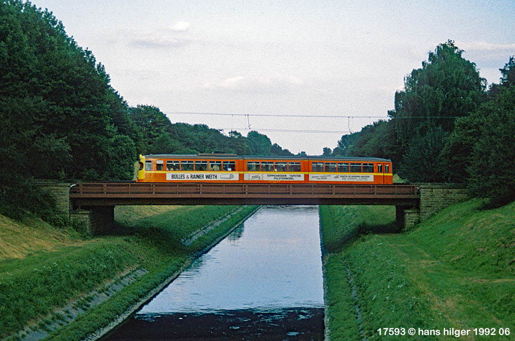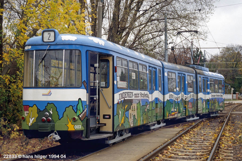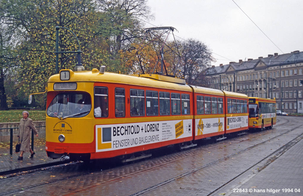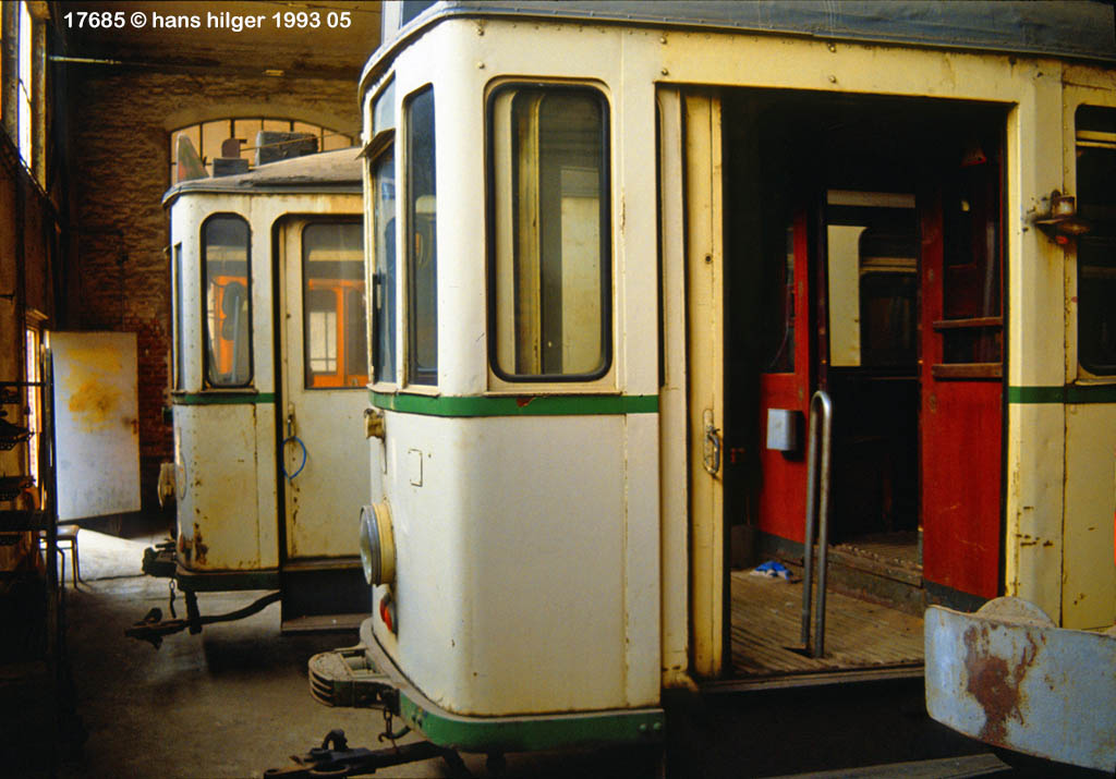 <1> Daß Karlsruhe dabei an erster Stelle steht, hat einen Grund: Das dortige Konzept halte ich für wunderbar und zukunftsweisend, ich wundere mich darüber, daß nicht schon viel mehr Städte auf die Idee gekommen sind, die dahintersteckt: Die Straßenbahn bis mitten in den Hauptbahnhof hineinfahren zu lassen. Und mich hat natürlich damals sehr erfreut, daß ich ausgerechnet einen Wagen erwischt habe, der zusätzlich eine Staatsbahn- Nummer trug, und dann war es auch noch der 450 001 . . . <2> Genial: Auf dem Nachbargleis fährt ein Fernzug ein, man kann im Hbf umsteigen in den innerstädtischen Nahverkehr<3> Auch in Bruchsal fuhr die Straßenbahn bis zum Bahnhof<4> Ein solches System hätte ich mir auch für meine Stadt Duisburg gewünscht, aber wie es scheint, fuhren nicht alle Fahrzeuge unter Beteiligung der DBAG = Diese Bahn hat keine Staatsbahnnummer und trägt auch keinen Keks<5> Diese aber<6> Immerhin waren es mehrere Wagen, die damals Staatsbahnnummern trugen<7> Jetzt sind wir ganz woanders: Antwerpen 1990, Triebwagen “2025”<8> Die Werbung aus dem Duisburg des Jahres 1992, in dem die Straßenbahn in den Keller kam<9> Im Hintergrund sehen wir noch eine der Straßenbahnen, die kurze Zeit später hier in Duisburg an der Koloniestraße vollständig verschwanden, aber paßt mal auf: Diesen dort wegfahrenden Wagen werden wir gleich wiedersehen in einer anderen Stadt ❗️<10> Eine der Bahnnen, die bis 1992 in Duisburg fuhren und die “nicht tunneltaiuglich” waren, was natürlich Quatsch war: Es war nur “zu teuer”, sie mit der Sicherungstechnik des Tunnels auszustatten, dann hat man sie lieber abgegeben nach Dessau. Hier überquert eine von ihnen den Ruhrgebietsfluß “Emscher” im Duisburger Norden<11> “904”, eine Duisburger Linie, die es nach 1992 nicht mehr gab<12> Und DAS war ihre damalige Linienführung: Am Ostbahnhof vorbei!<13> Das war damals der Preis für eine Kutzstrecke = Eine DM !<14> Eine der alten Bahnen bei Thyssen in Hamborn<15> Und mehrere ganz alte Fahrzeuge im Betriebshof in Hamborn<16> Einer davon ist bekannt als 1191<17> Was ist denn hier passiert? Das sieht sehr unaufgeräumt aus . . . Nach der Tunnelöffnung in Duisburg gingen mehrere Fahrzeuge zur Verschrottung nach Essen, wo aber vor der Zerlegung die Mittelteile herausgenommen wurden, um damit Essener Wagen zu verlängern. Hier sehen wir einen von ihnen schon in Essen und haben einen Blick hinein in die damals übliche Bestuhlung, die man heute als “Holzklasse” bezeichnen würde. Hiervon ging also alles in den Schrott, auch die Ersatzstühle, nur der Mittelwagen wurde weiterverwendet<18> Auch schon ein recht altes Bild aus Oberhausen: Blick vom Gasometer 1996. Vorne wird bereits das Centro gebaut, hinten in Osterfeld regiert noch die Schwerindustrie, die in den nächsten Jahren komplett verschwinden wird