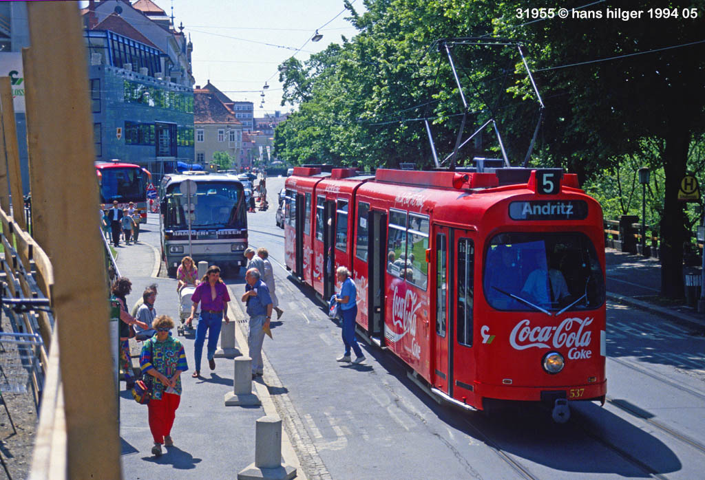 <19> Dortmunder Wagen “2” auf Linie 5 zum Westfalenpark irgendwo bei Dortmund (Ort unbekannt), Mai 1977<20> Hier sind wir weit weg: Ein Zweiachsergespann im polnischen Posen/Poznan (leider etwas unscharf)<21> Auch das ist weit weg in einer vergangenen Zeit, und in Prag . . .<22> . . . wo auch eine “Streckenaufnahme” gelang . . . (in Prag)<23> Hier sehen wir zwar dieselben Fahrzeuge wie in Prag, nämlich Tratras, aber wir sind in Dresden<24> Und jetzt sind wir in Graz, Österreich<25> Denn dort, in Graz, gab es nach 1992 ausgemusterte Fahrzeuge aus Duisburg!<26> Auch dieser Wagen hier in Graz stammte aus Duisburg (dort 1080)<27> Und noch einer: Der “DVG 1093” aus Duisburg als “Graz 537” dortselbst. Er ist inzwischen verschrottet, hatte aber noch ein paar schöne Jahre in Graz<28> Dieser “Graz 553” war aber ein schon für Graz gebauter DÜWAG (Oder ist das gar kein DÜWAG?)<29> Wohingegen der “Graz 534” der “DVG 1090” aus Duisburg war<30> Der Graz 612, ein modernerer Wagen