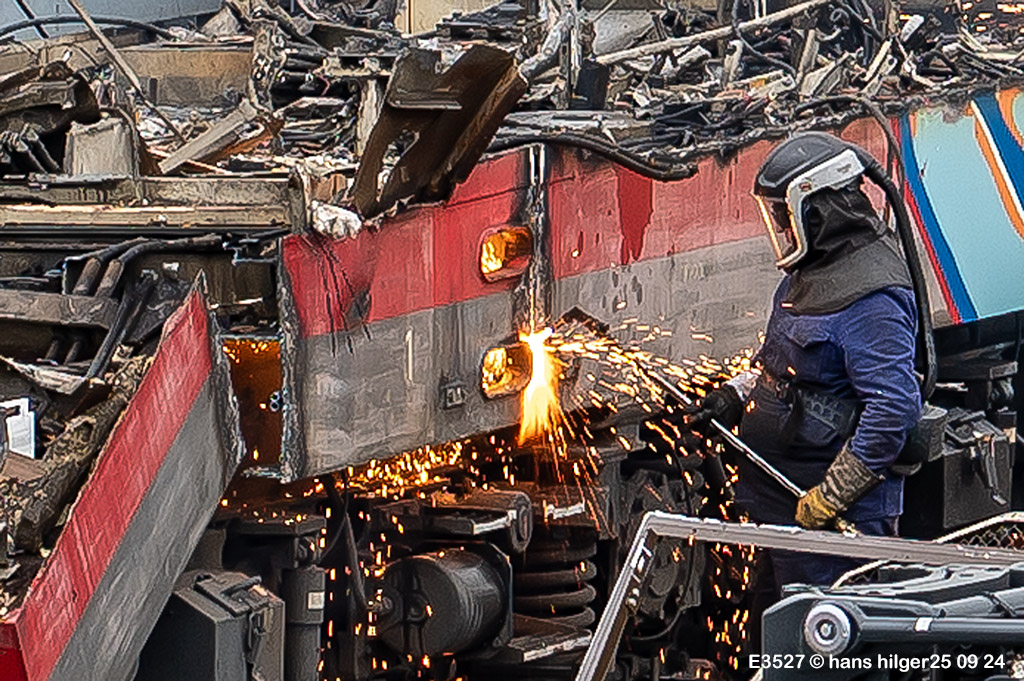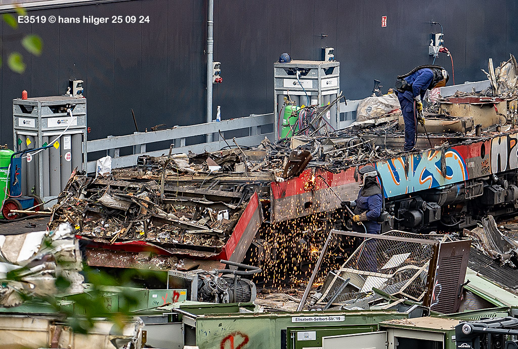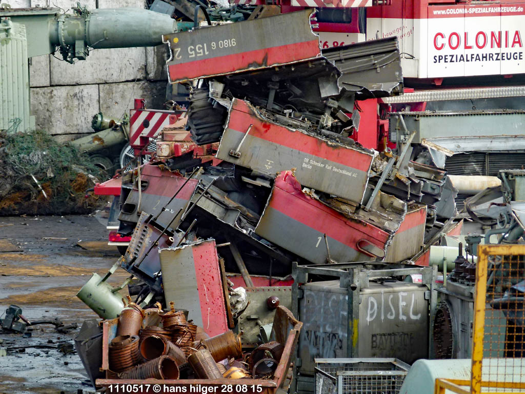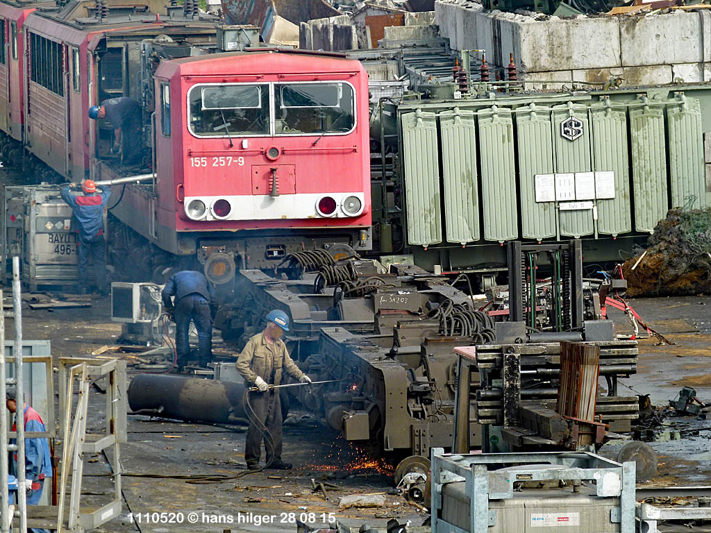 <100> Wenn nicht der Feierabend naht, wird der Rahmen normalerweise SO zerlegt: Er wird in etwa gleichgroße Stücke geschnitten, wie hier bei 155 030