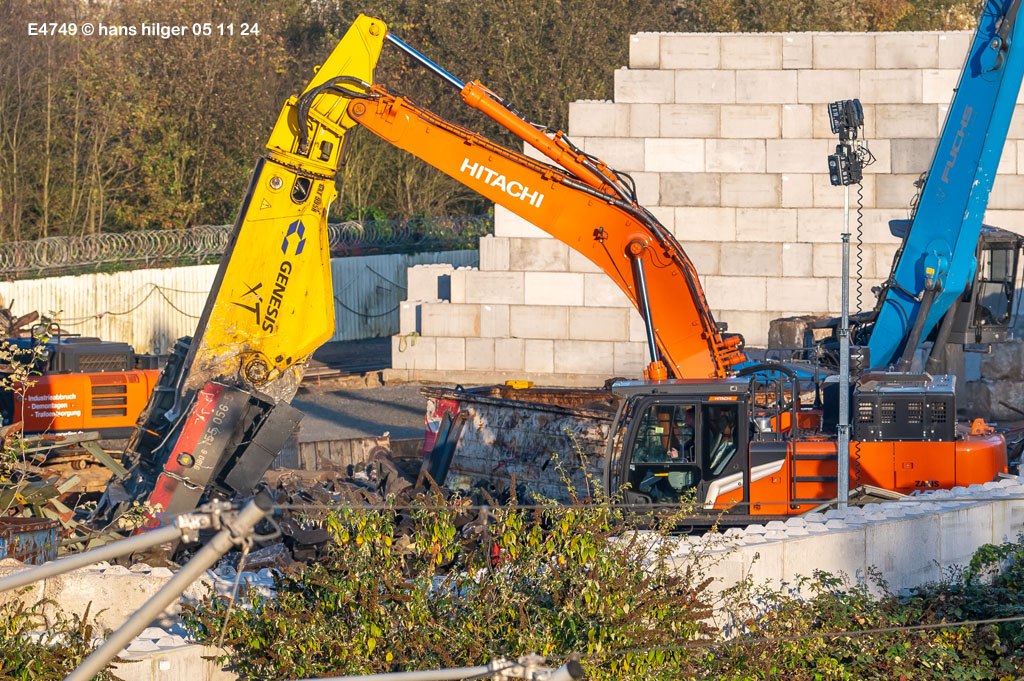 <4> Plötzlich und vollkommen unvermittelt schlug der Bagger die “Genesis”- Schere in die Führerhausecke der 155. Das war der Beginn der Zerlegung