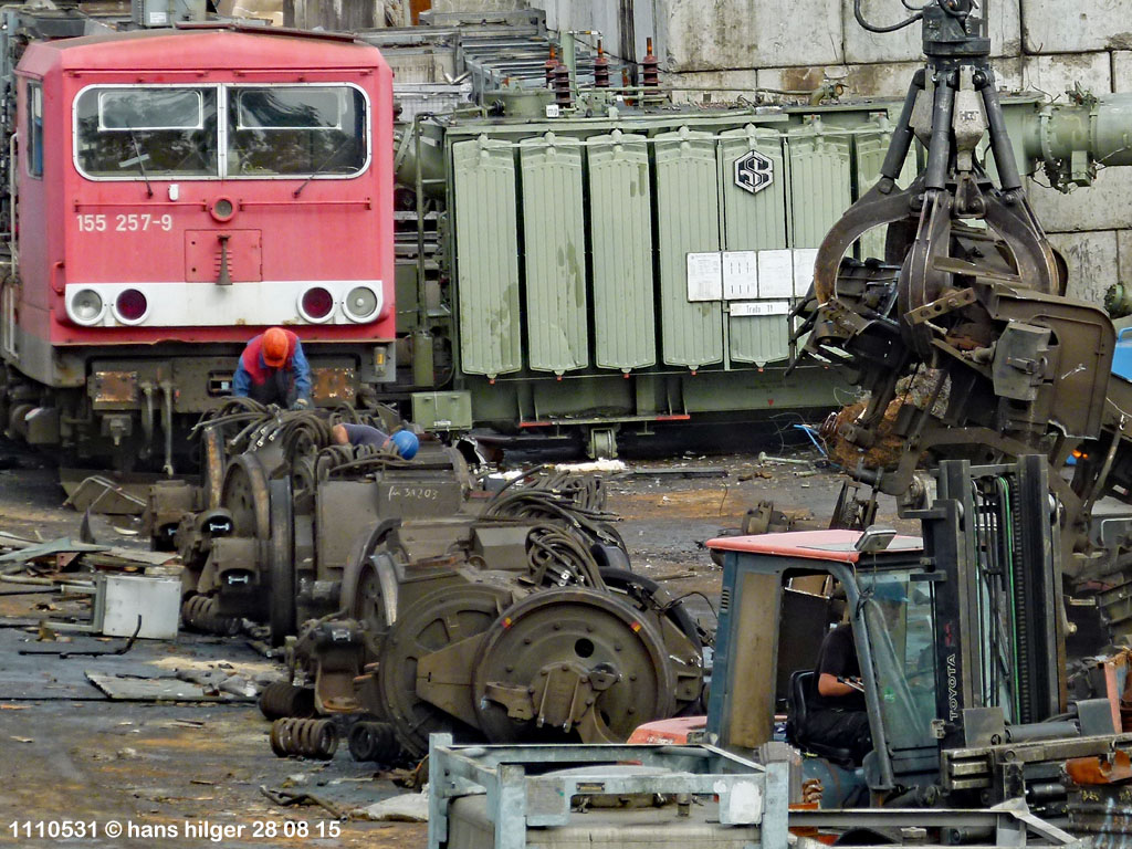 <3> Daß dies die letzte Aufnahme der 155 083 im letzten Anlieferungszustand sein würde, konnte ich nicht wissen beim Knipsen! Viele Teile waren ihr bereits entnommen, so hat sie Anderen zu längerem Leben verholfen, aber ihre Geschichte endet hier . . .